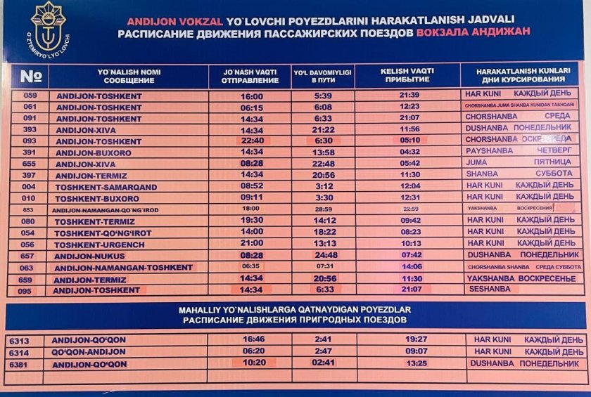 Расписание поездов Узбекистана