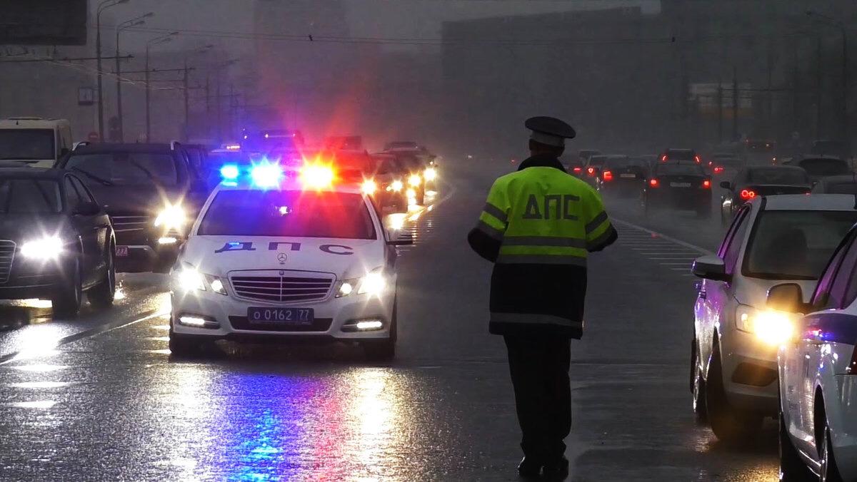 ДПС ночью с мигалками