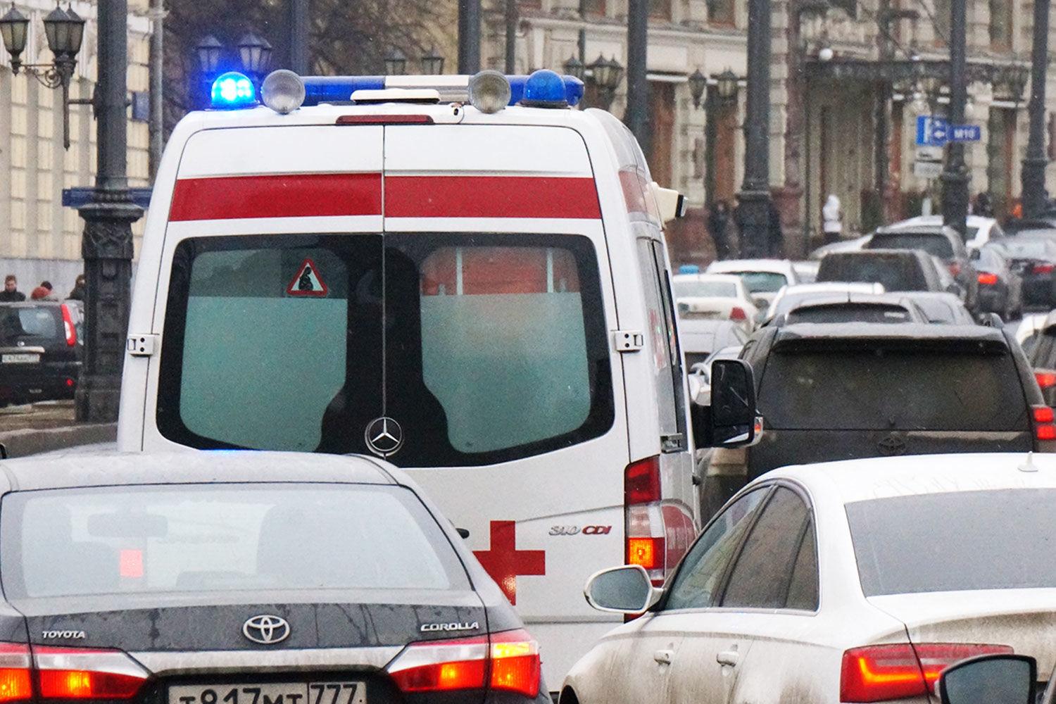 Скорая с мигалками в пробке