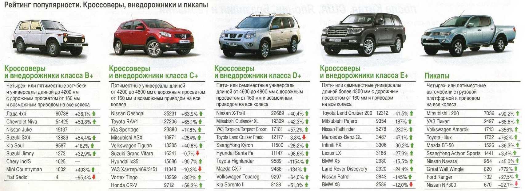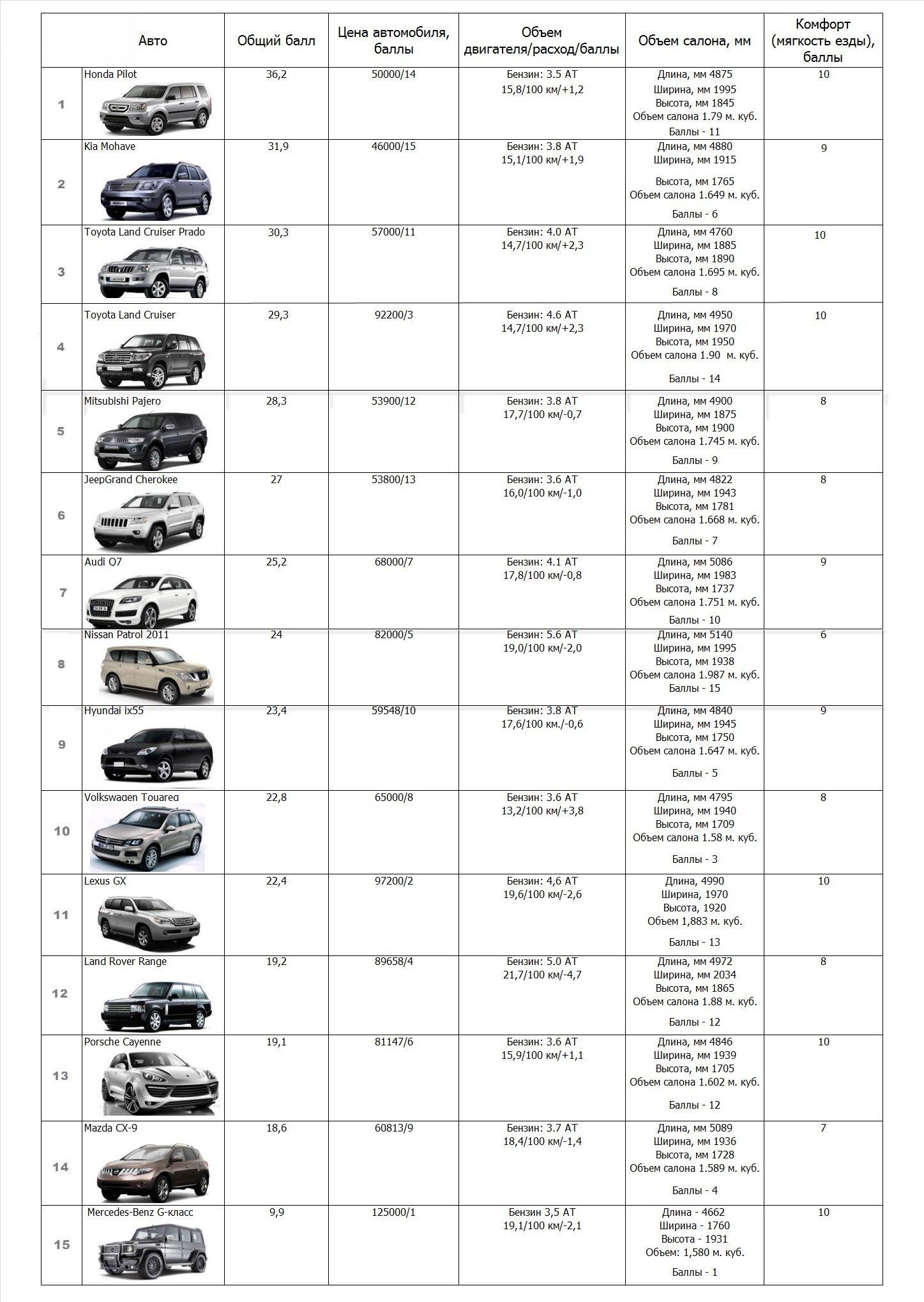 Габариты внедорожников таблица