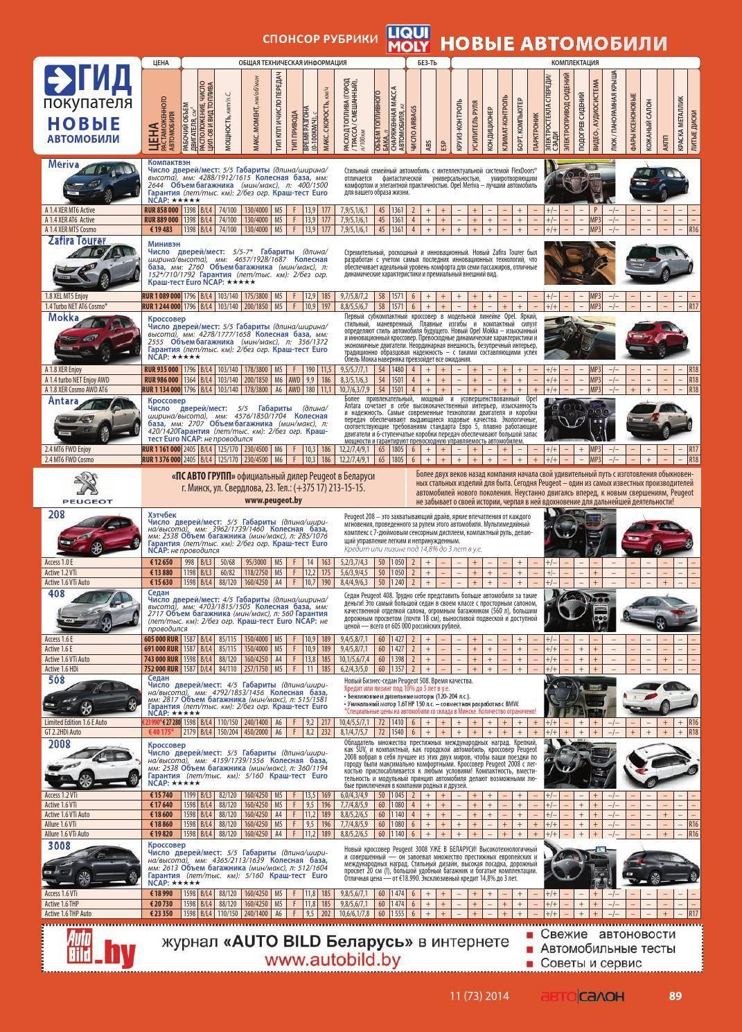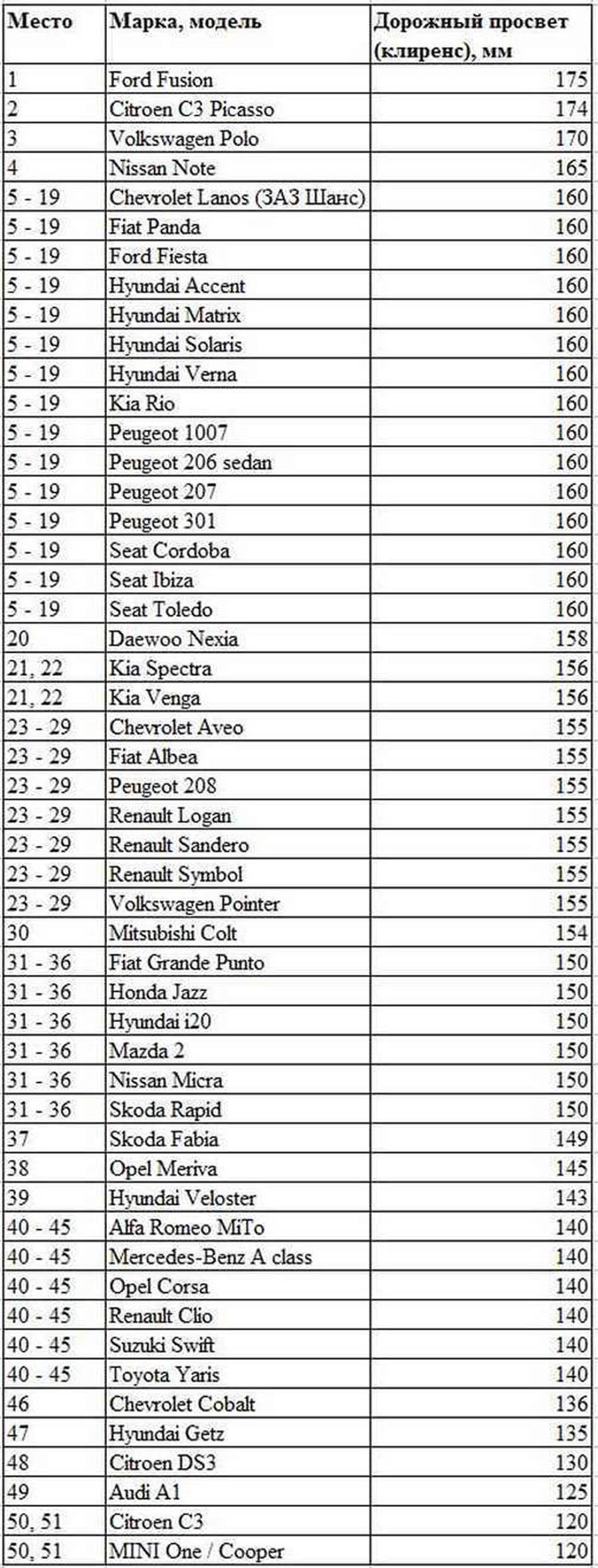 Таблица клиренса легковых автомобилей по маркам