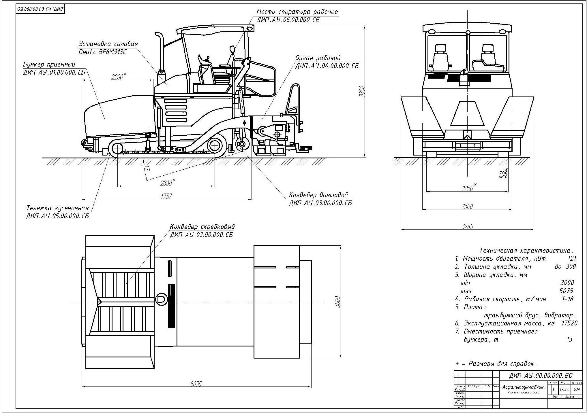Габариты асфальтоукладчика Vogele 1800