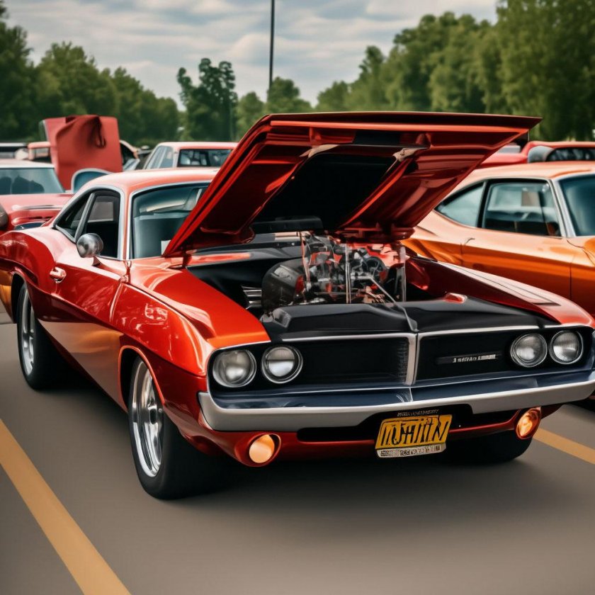Открытый капот dodge Challenger