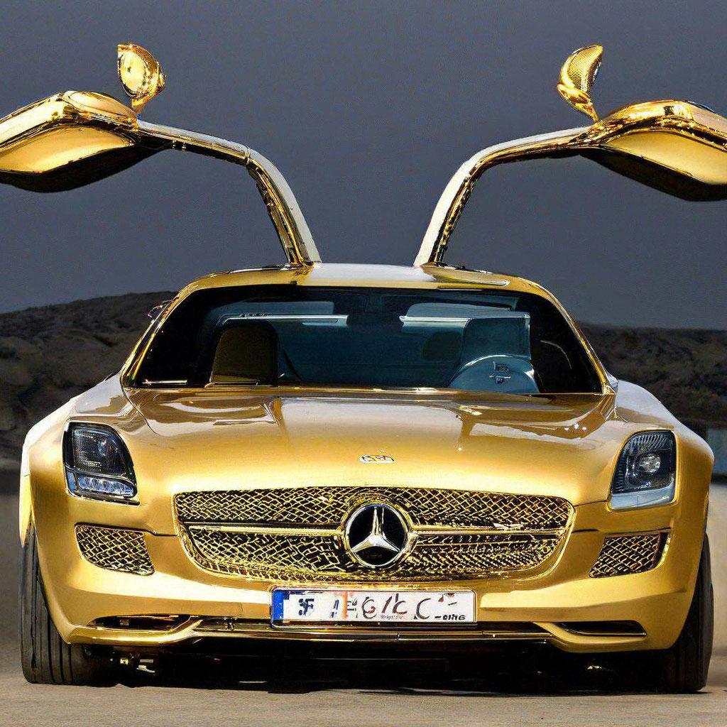 Золотой Mercedes-Benz SLS AMG.
