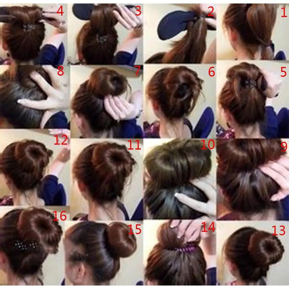 ![Причёска шишка на голове]()