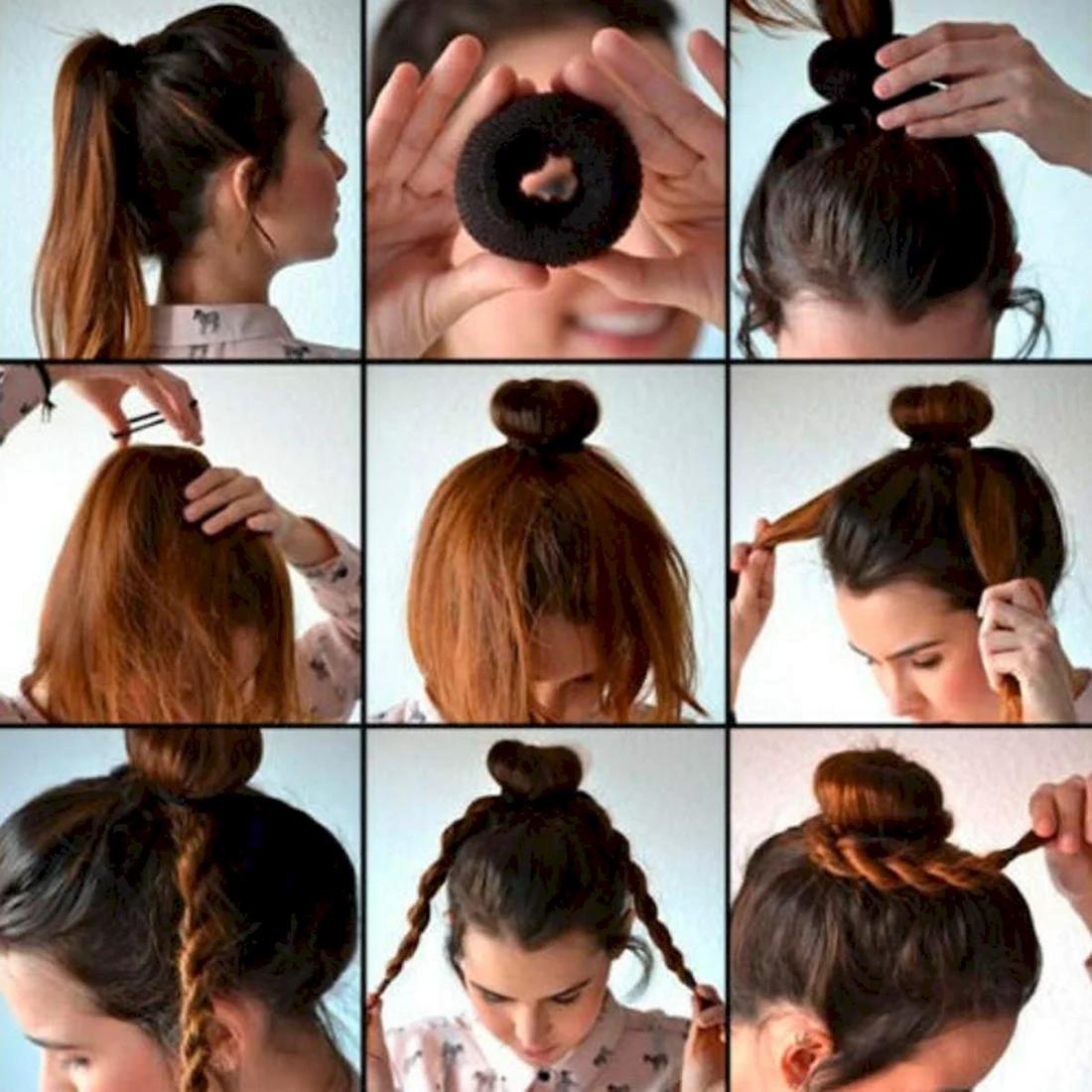 Пучок на короткие волосы с бубликом