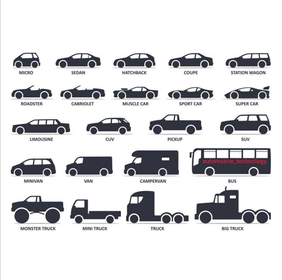 Силуэт вида сбоку автомобилей по маркам