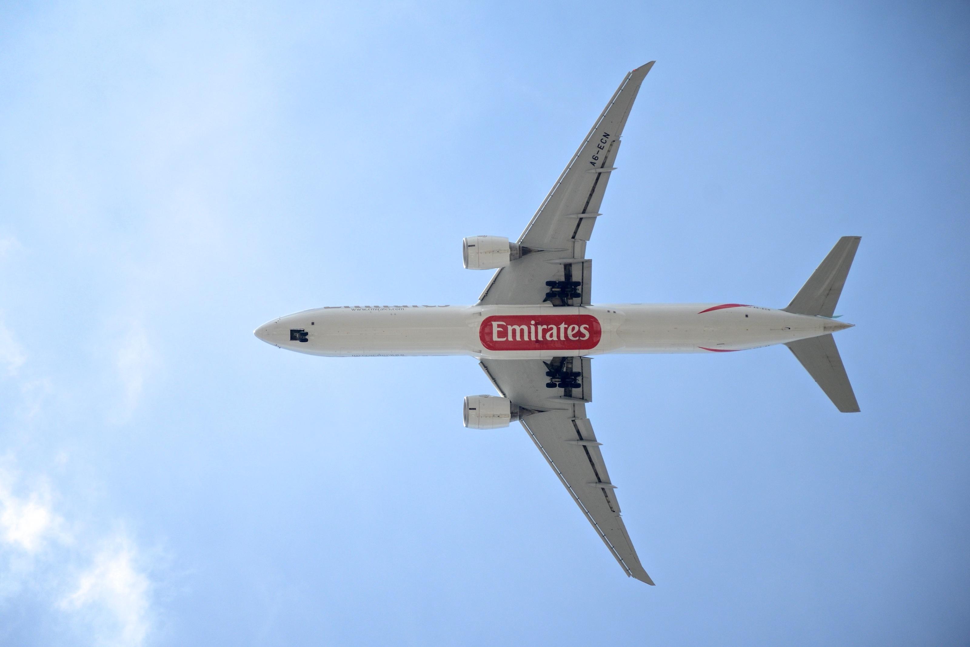 Самолёт Эмирейтс снизу