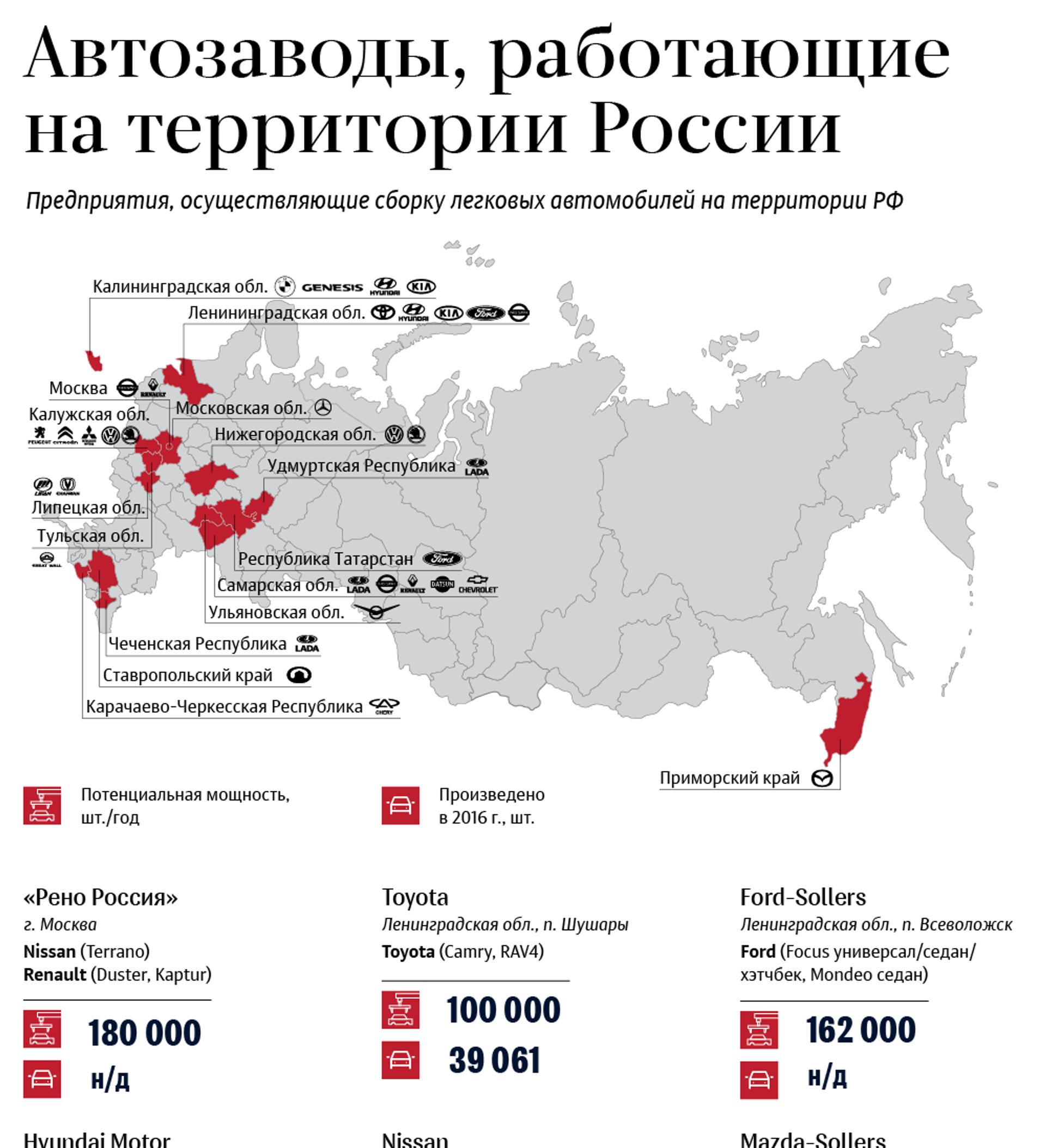 Карта автомобильных заводов в России