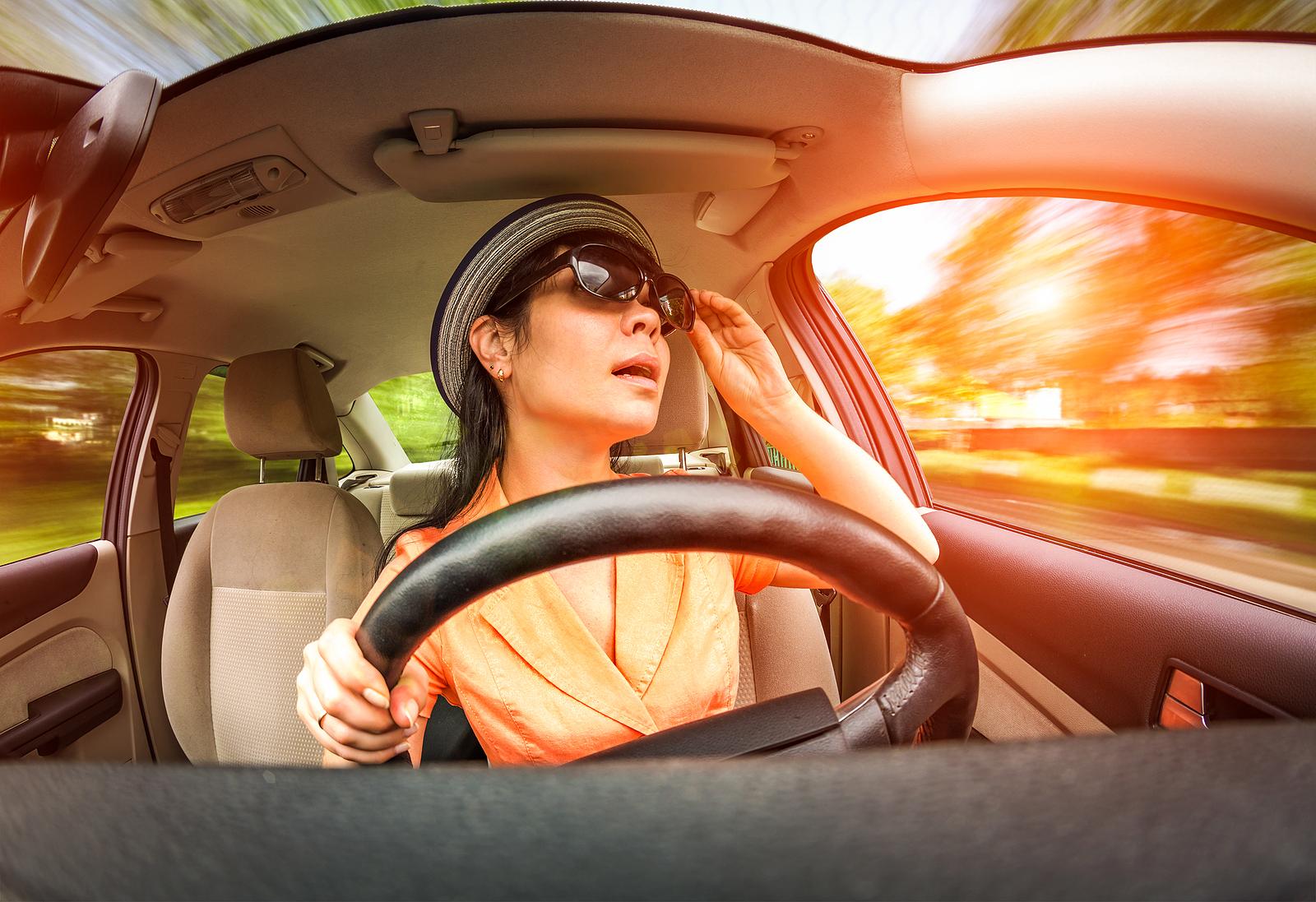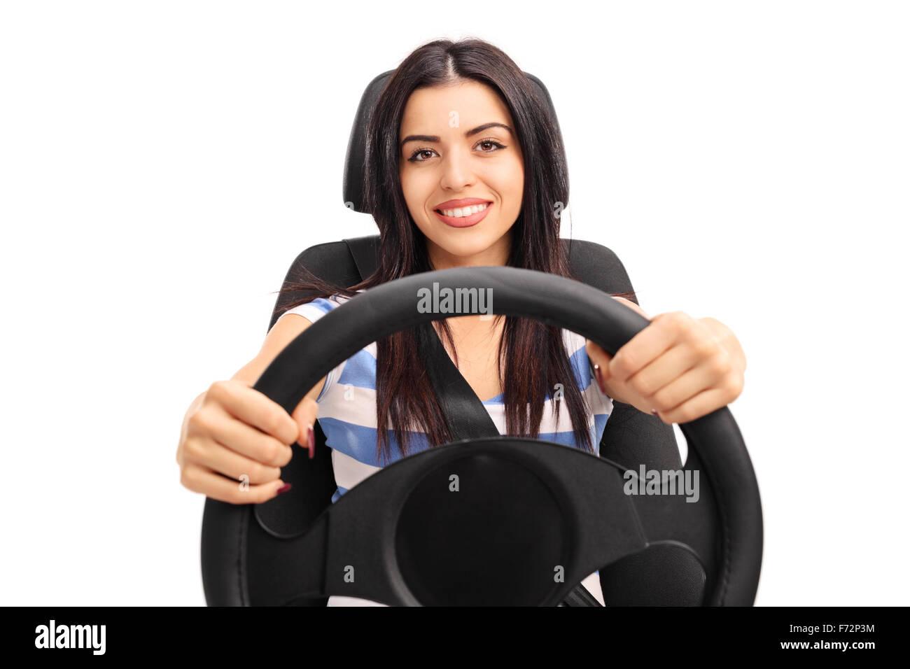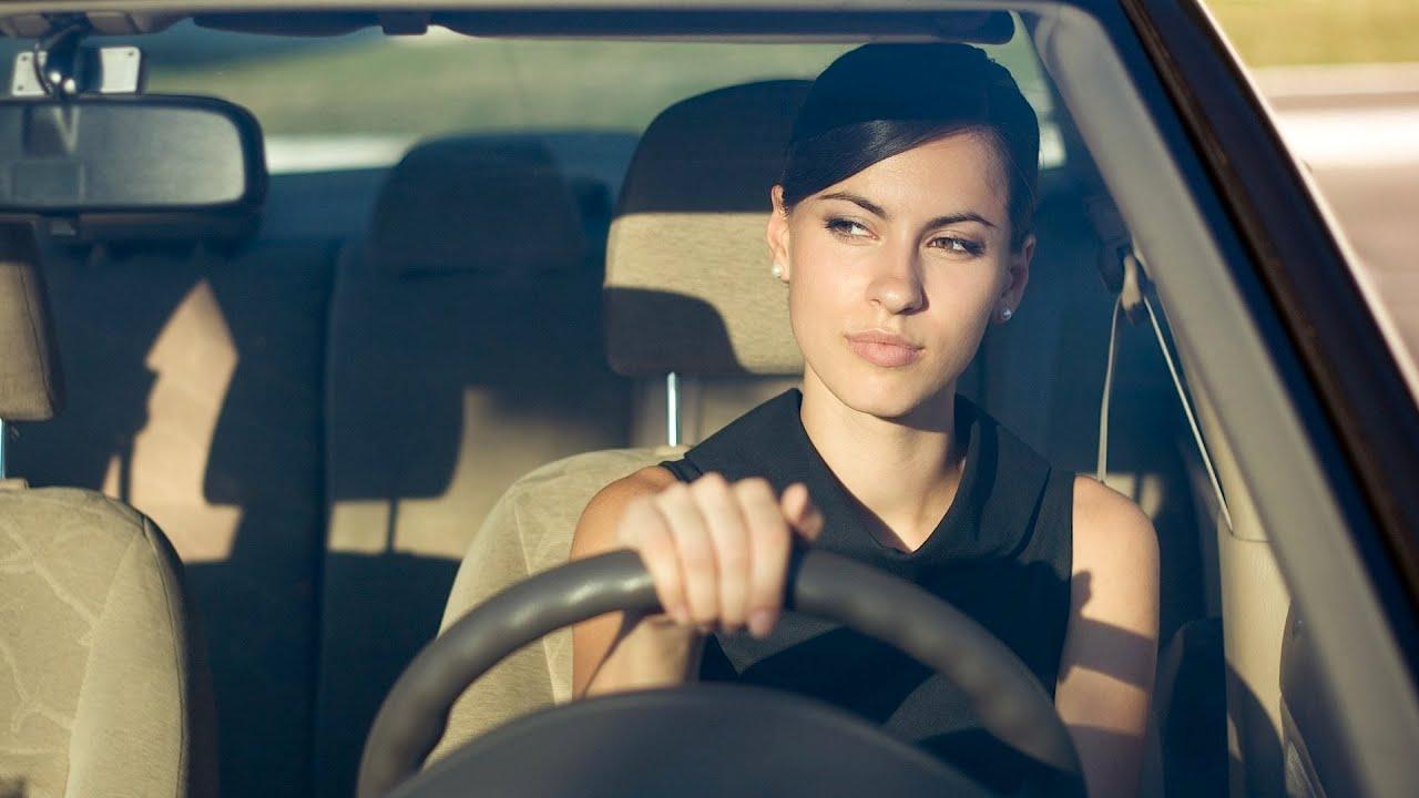 Женщина за рулем вид спереди