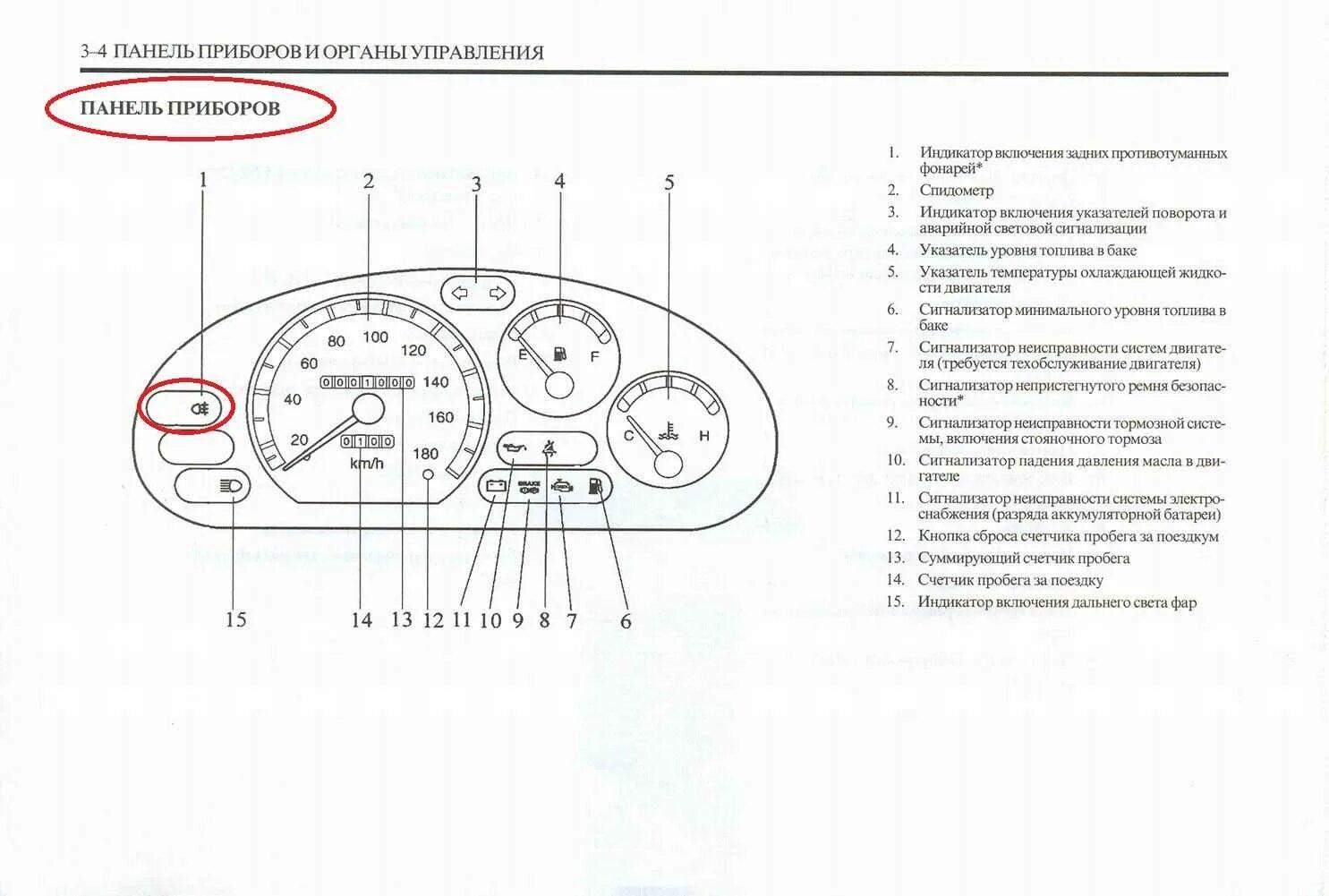 Daewoo Matiz схема приборной панели