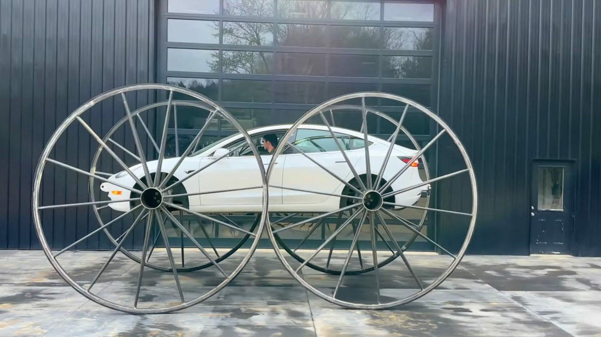 Тесла с большими колесами