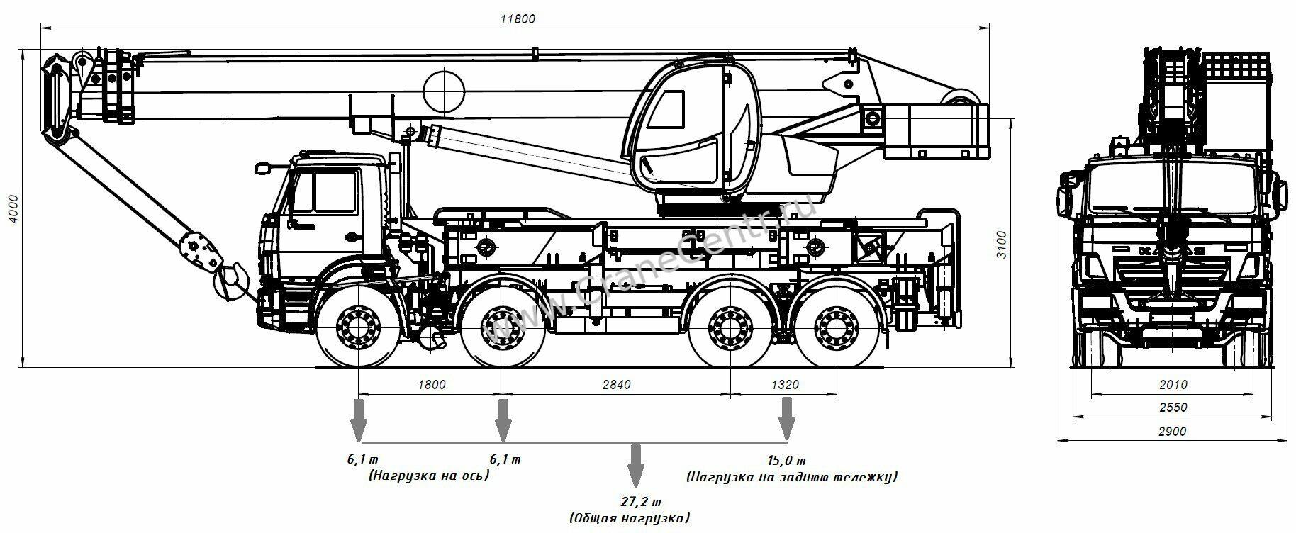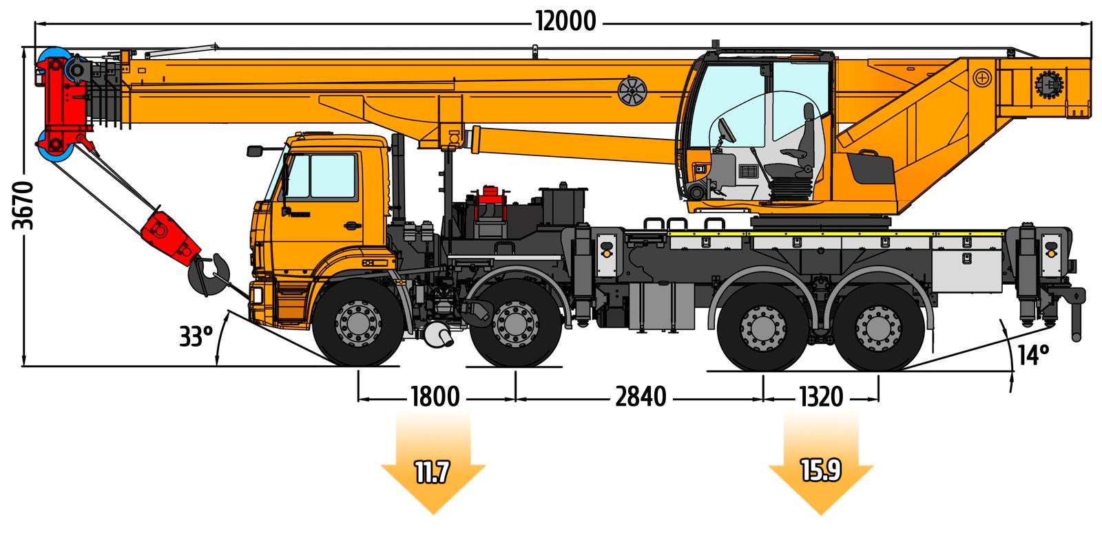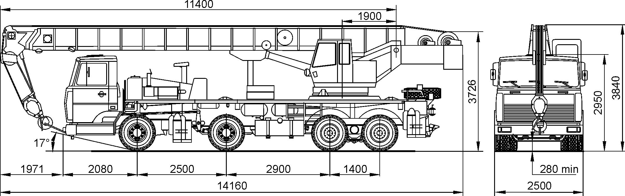 Автокран КС-6476 габариты