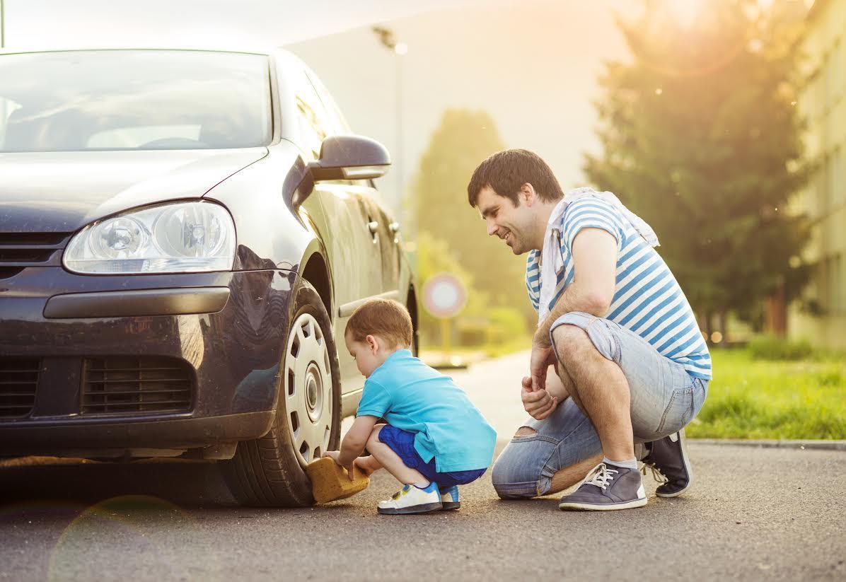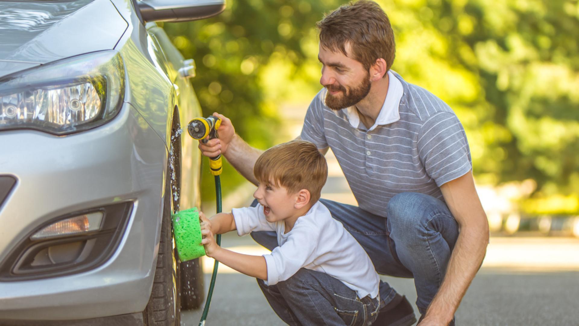 Папа моет машину