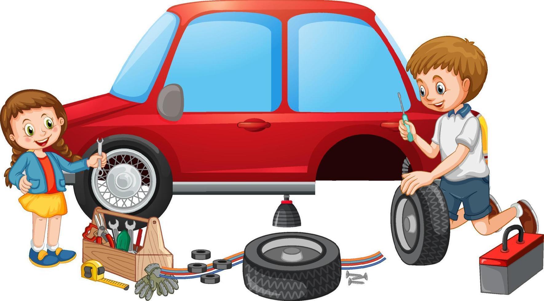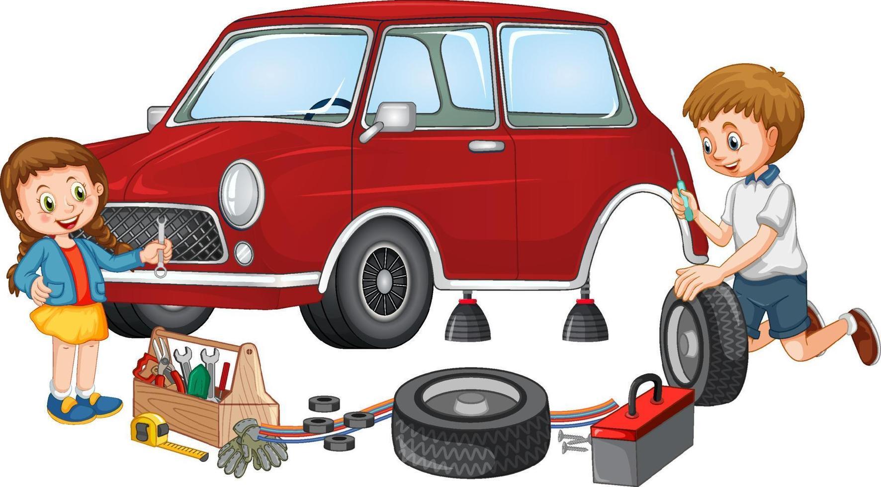 Ребенок чинит машину