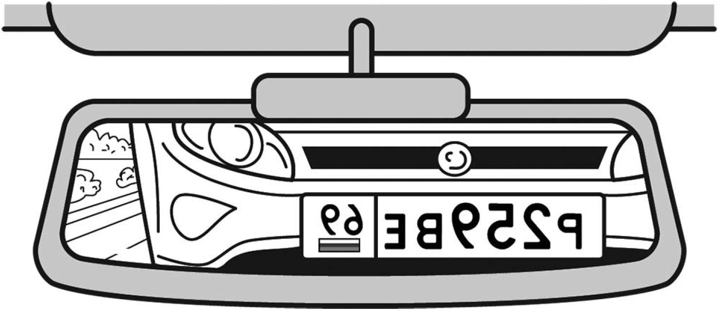 Водитель видит в зеркале заднего вида автомобиль идущий сзади номер