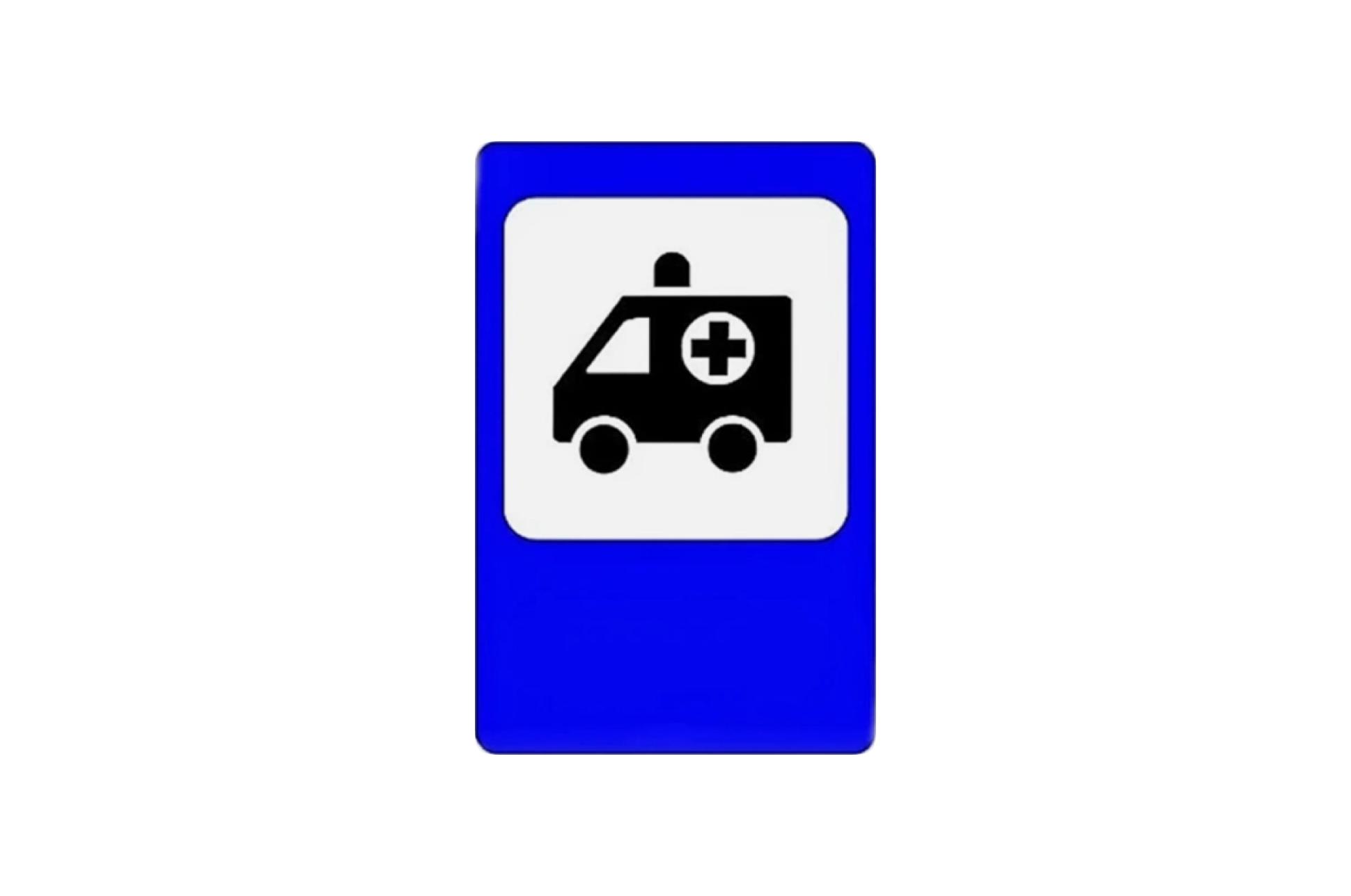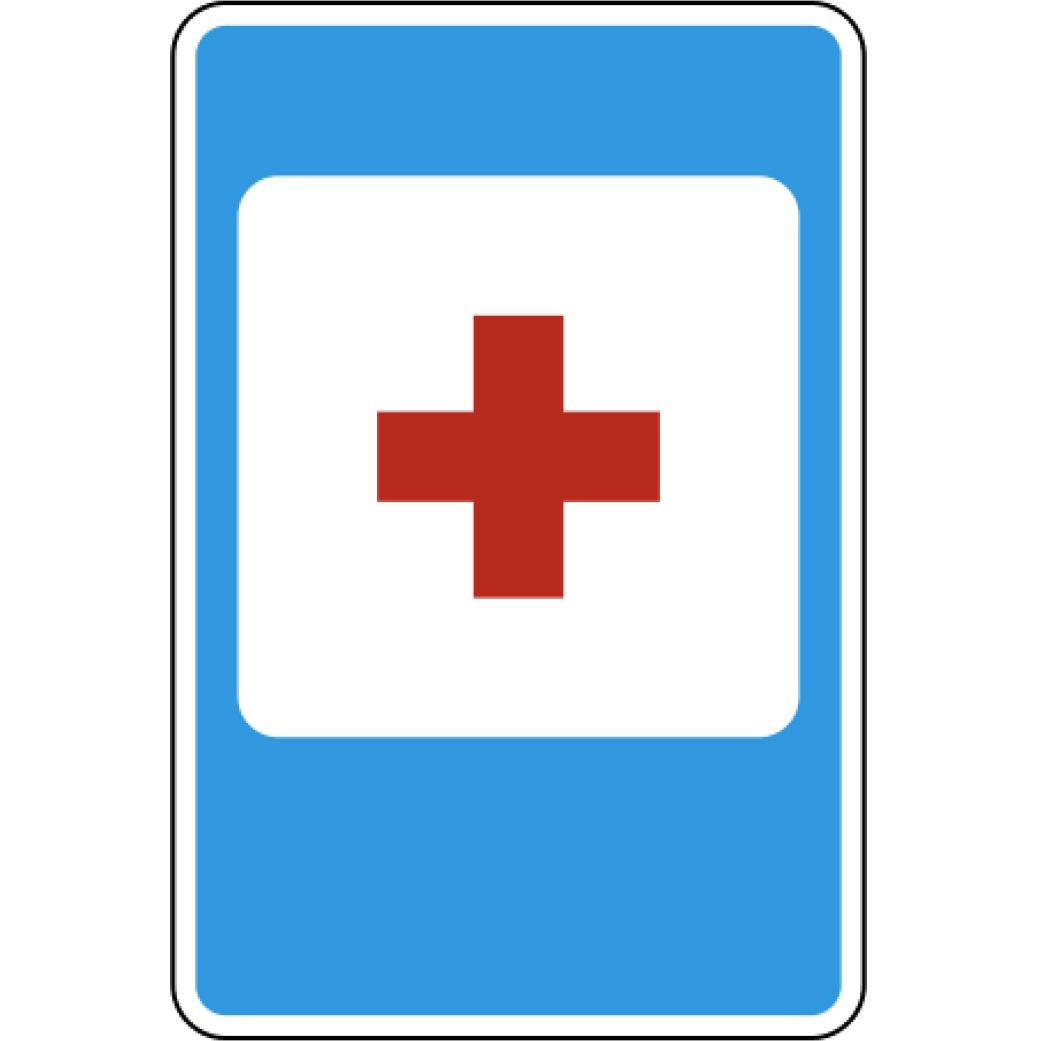 Пункт первой медицинской помощи дорожный знак