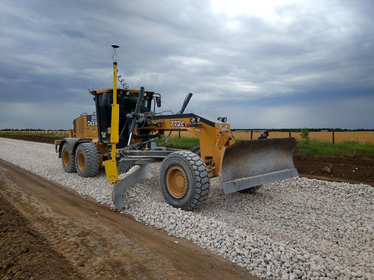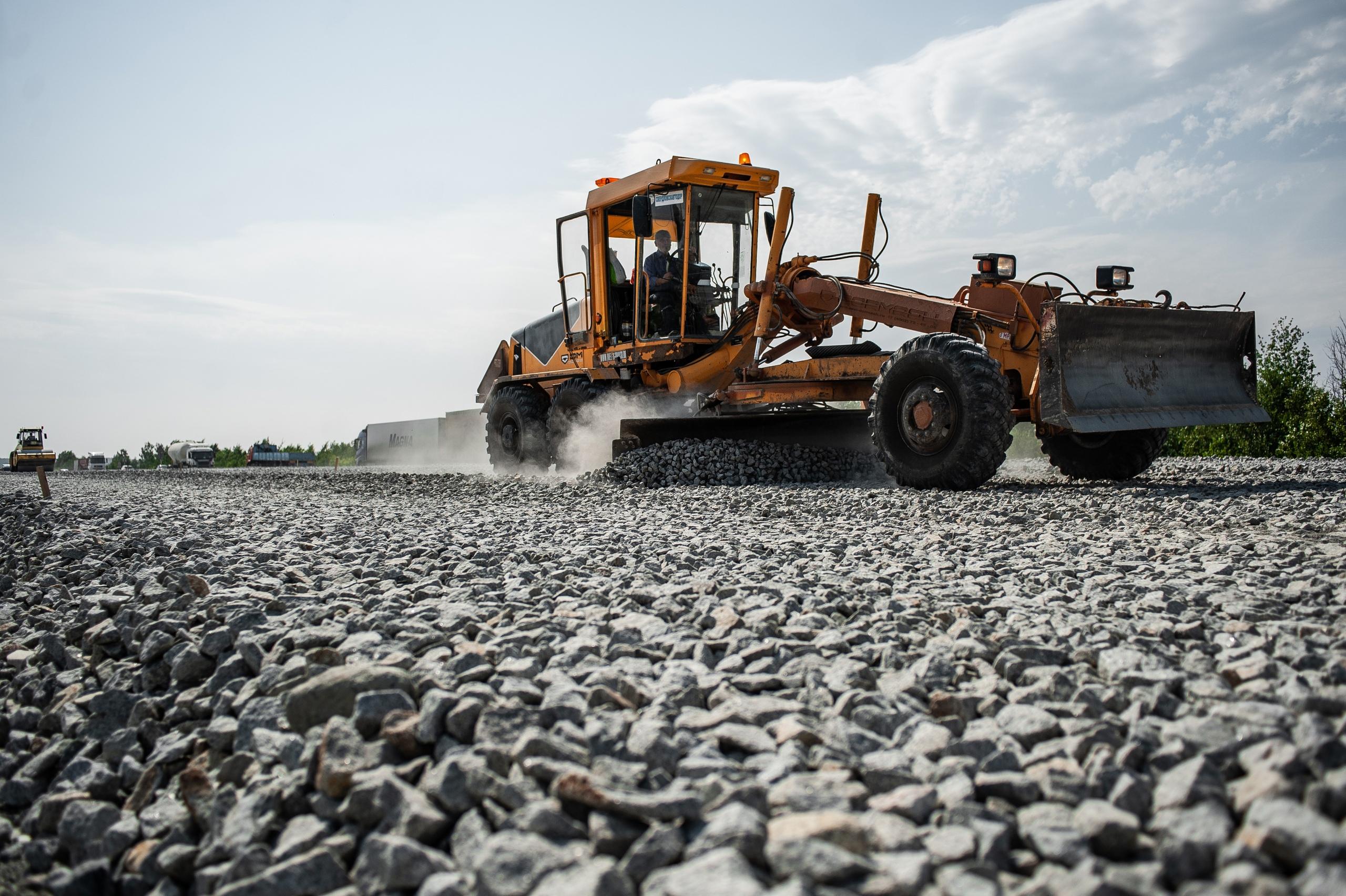 Разравнивание щебня автогрейдером
