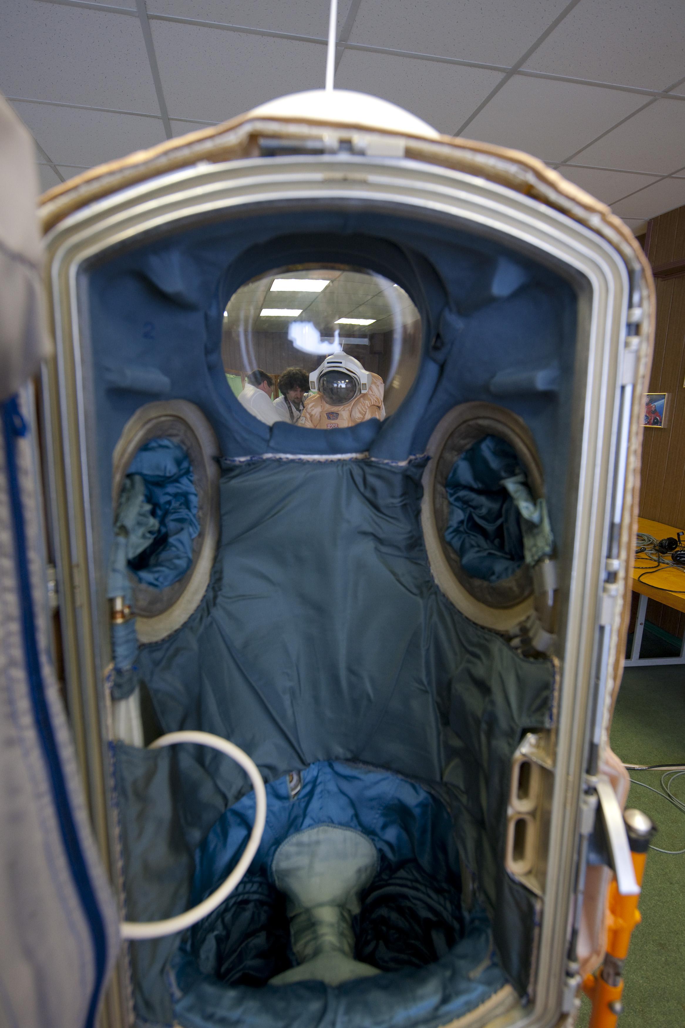 Скафандр Сокол в кресле Казбек