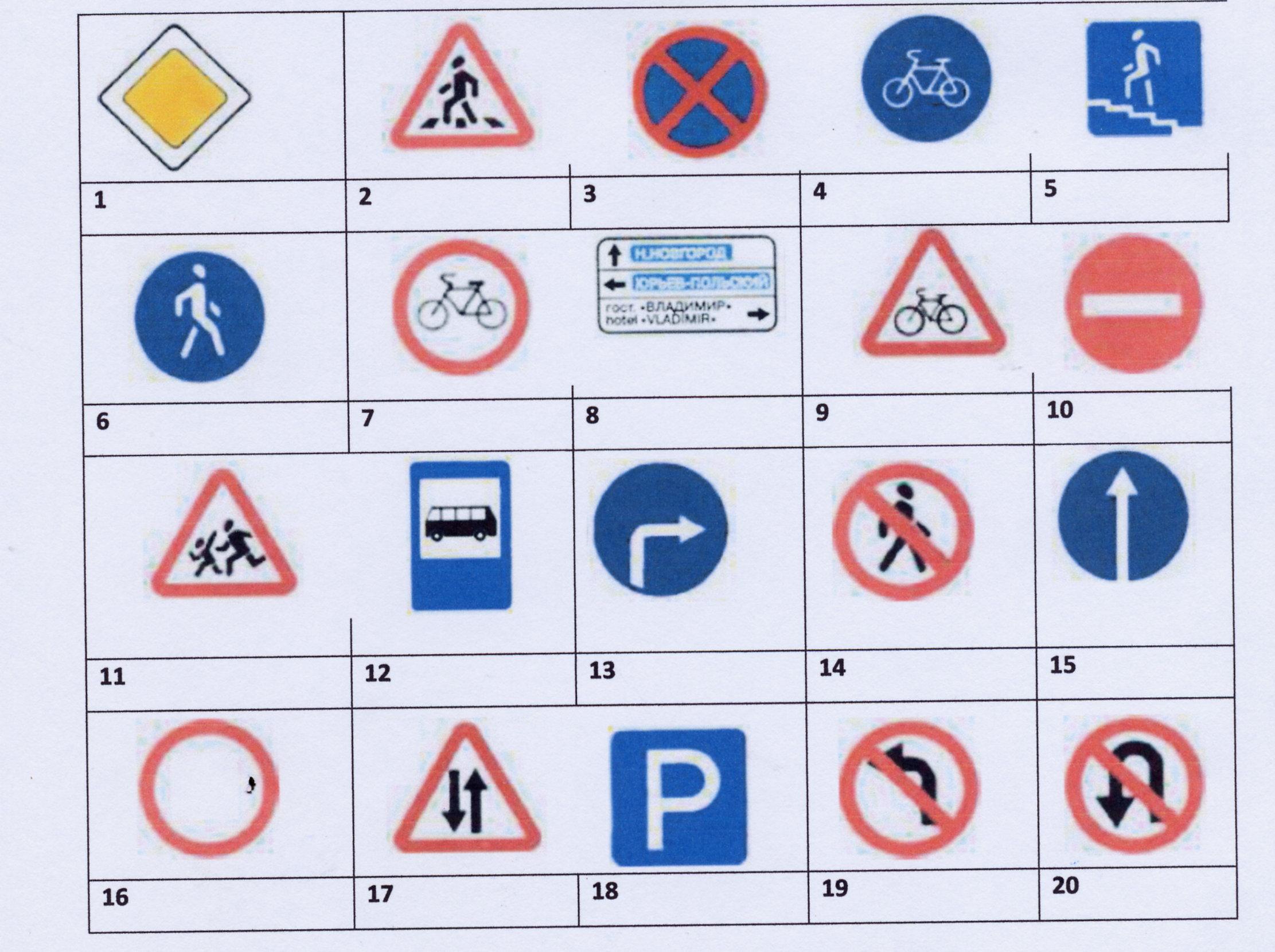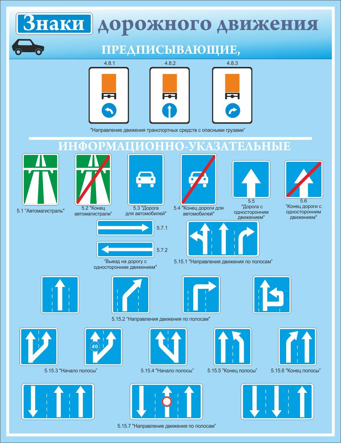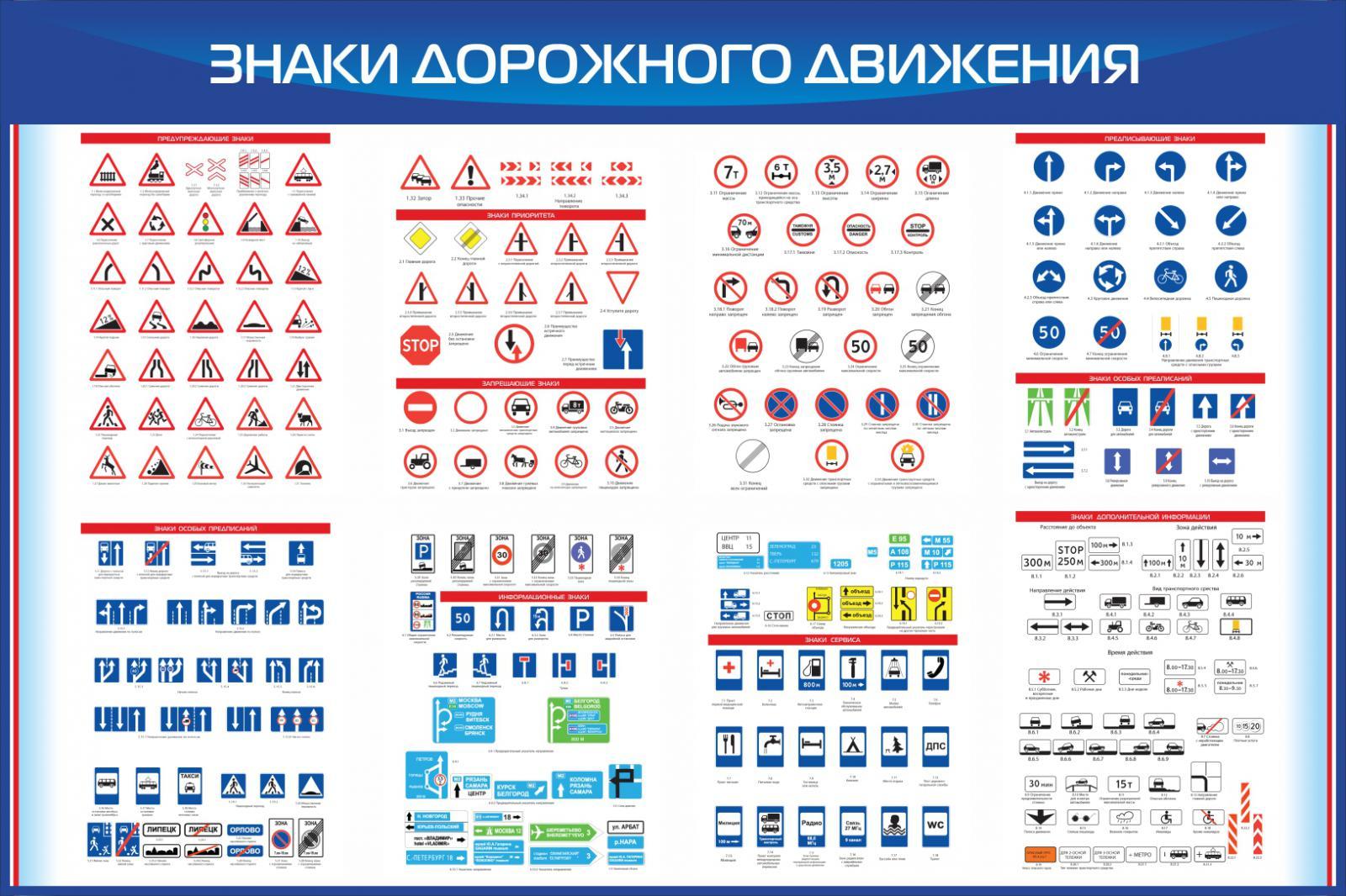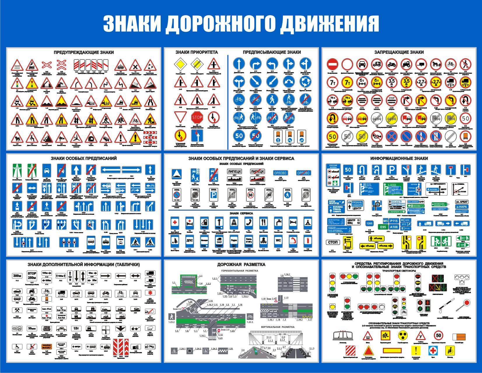 Таблица дорожных знаков пдд