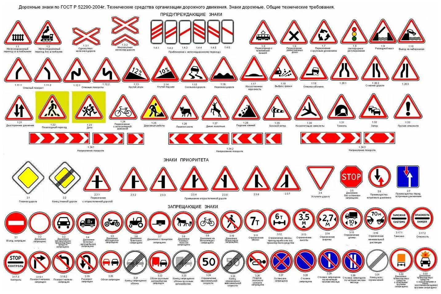 Знаки дорожного движения и их обозначения