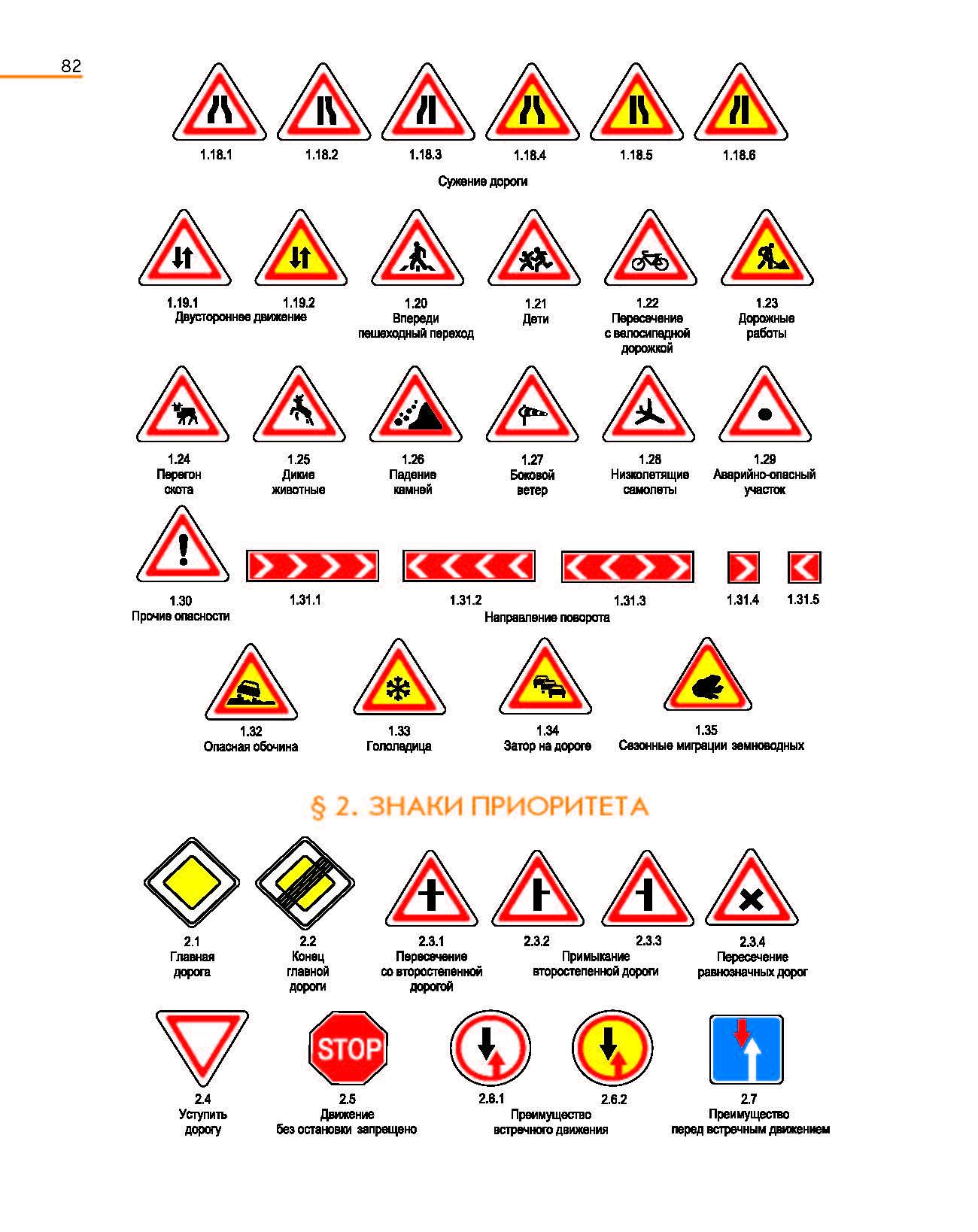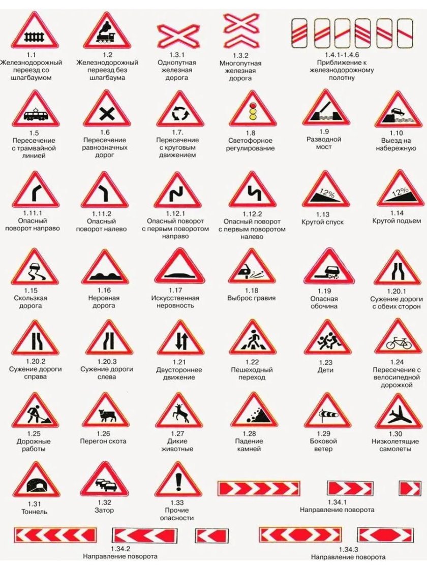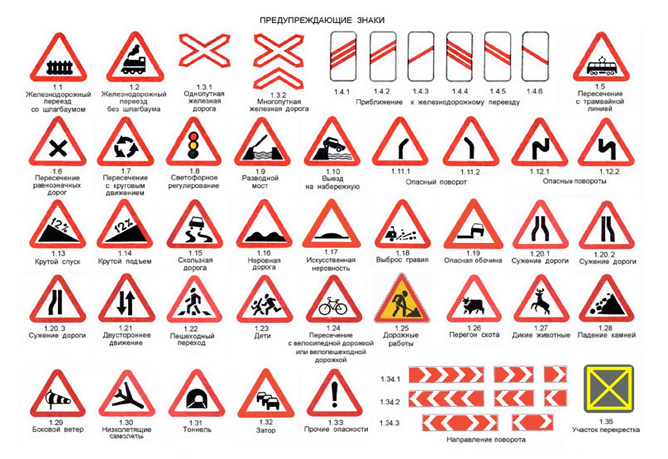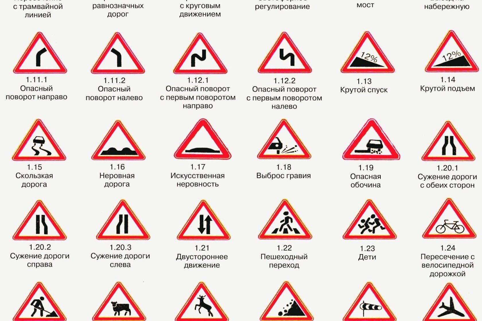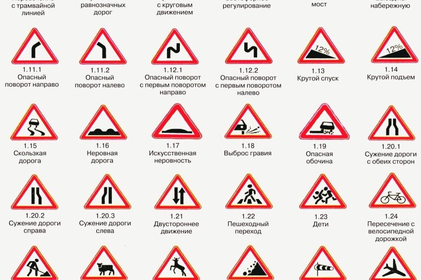 Таблица предупреждающих знаков ПДД
