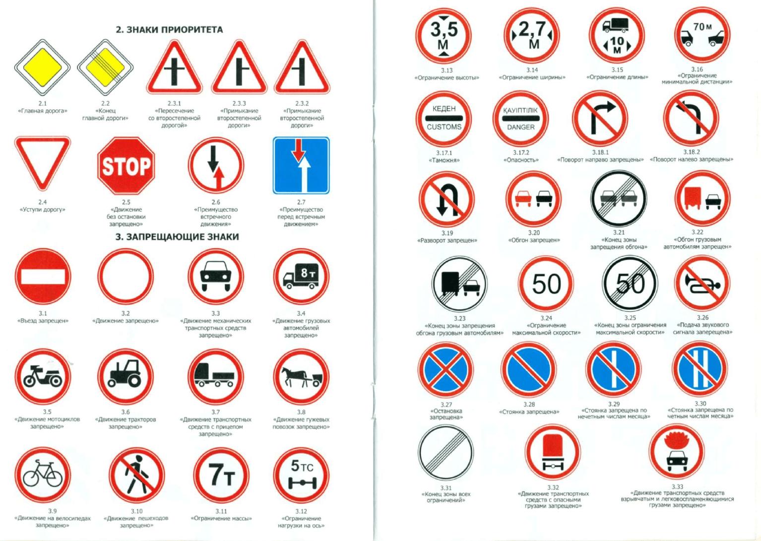 Знаки ПДД Казахстана с описанием