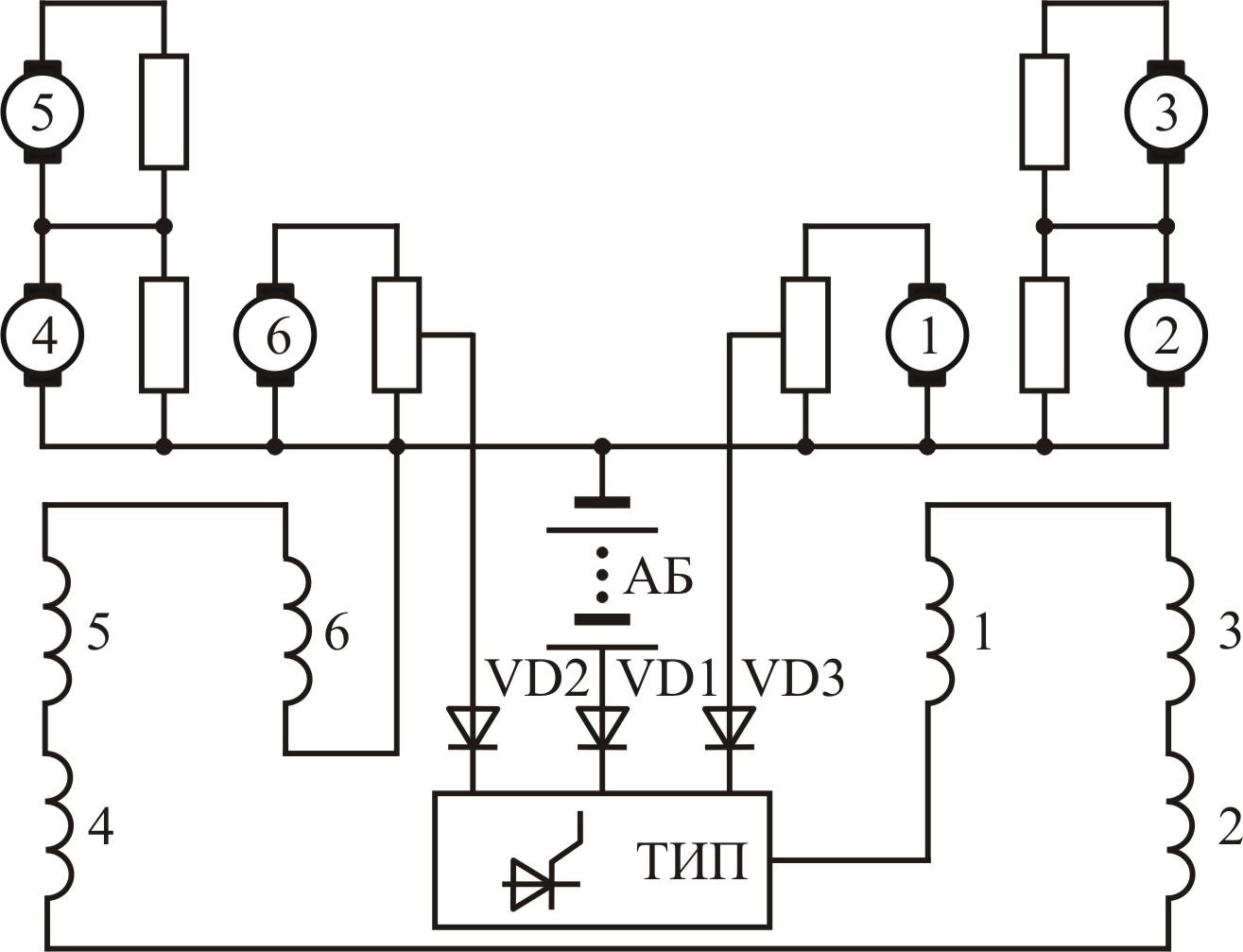 Принципиальная схема силовой цепи трамвайного вагона КТМ 605