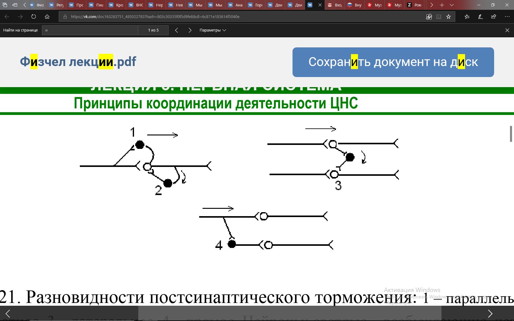 Схема пресинаптического и постсинаптического торможения