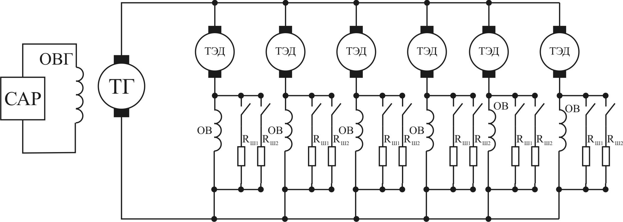 Упрощенная электрическая схема электровоза постоянного тока