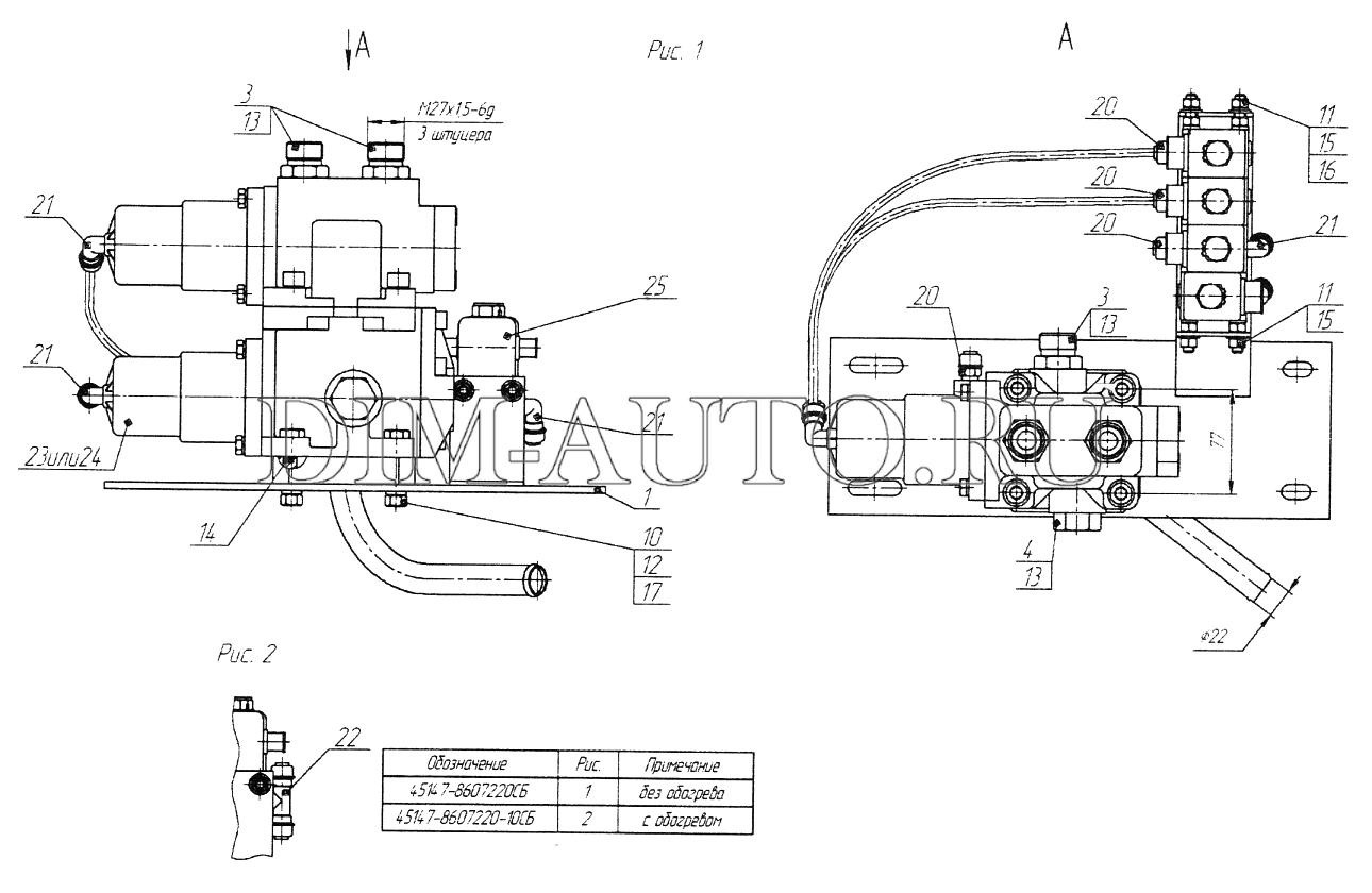 Гидрораспределитель подъема кузова КАМАЗ схема 6522