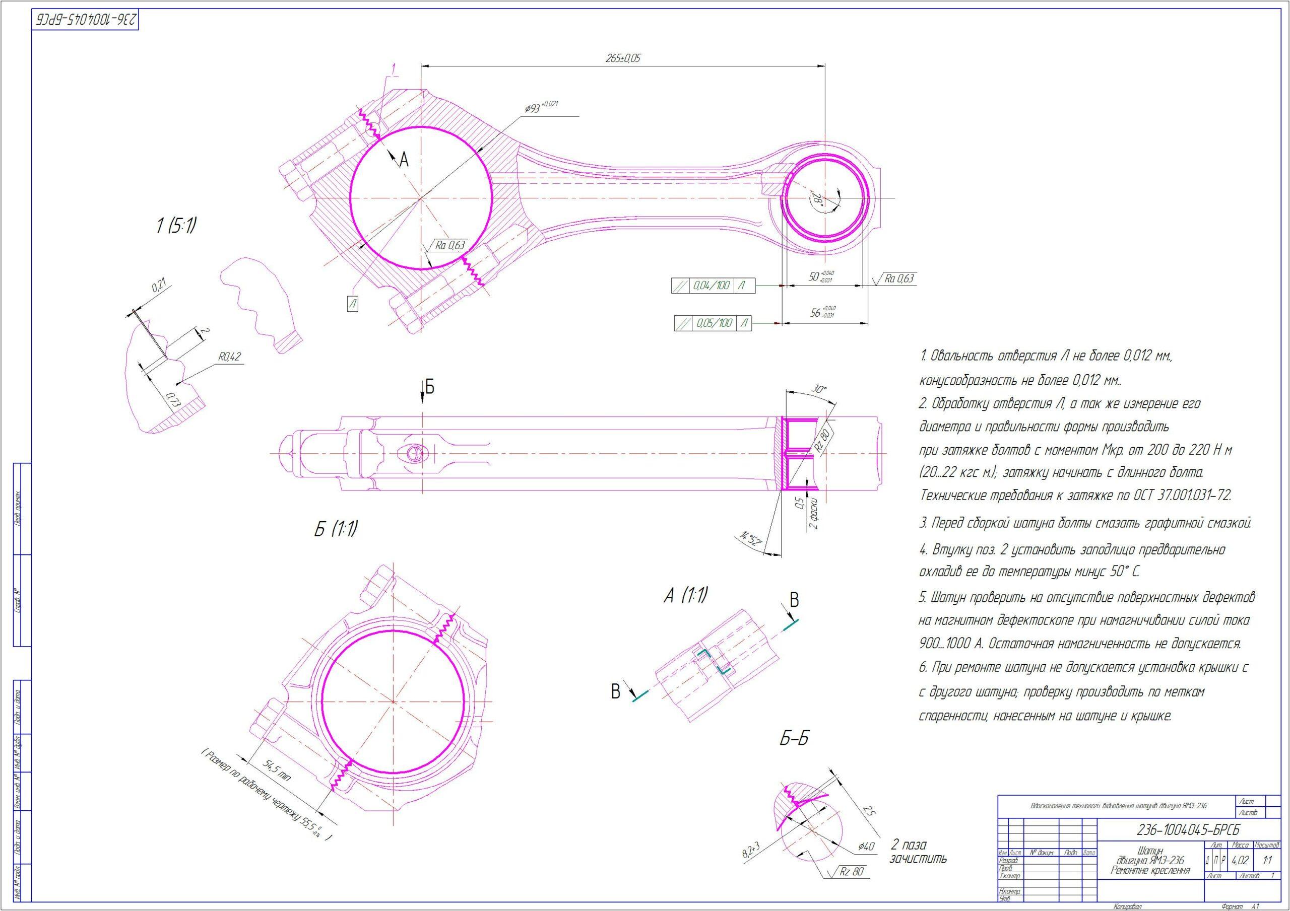Шатун ЯМЗ-240 ремонтный чертеж