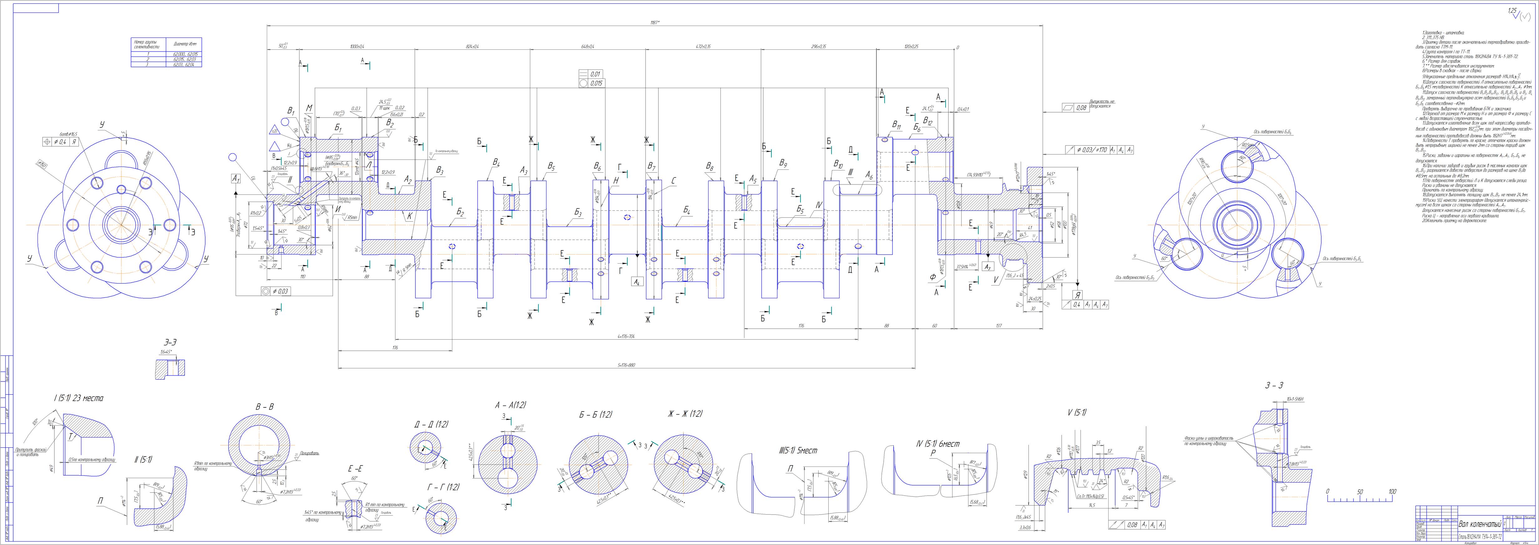 Чертеж коленчатого вала ЯМЗ 238