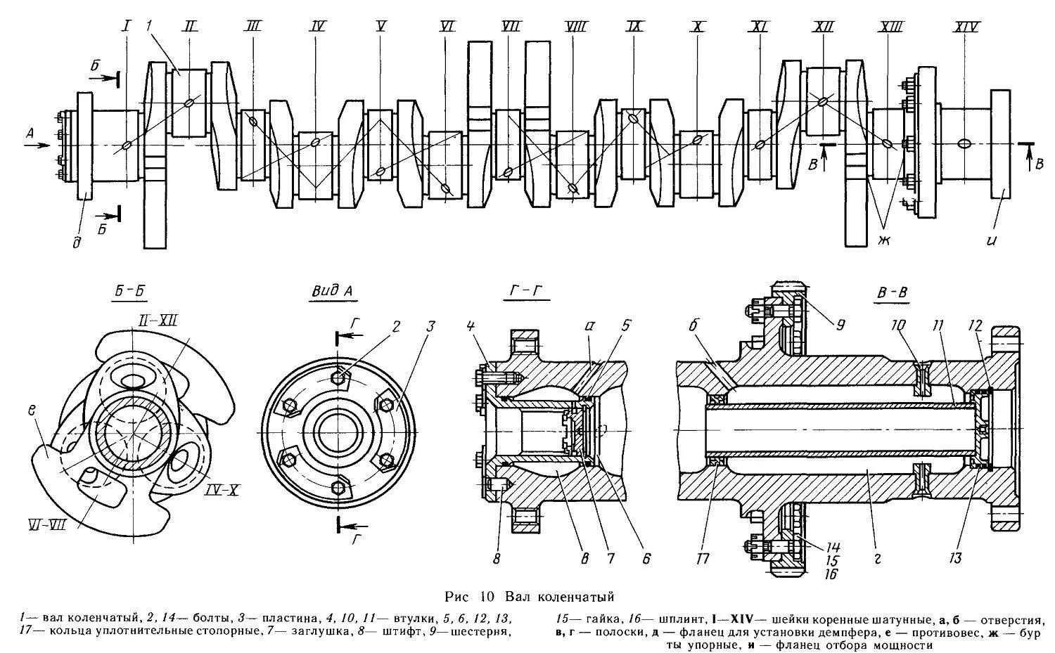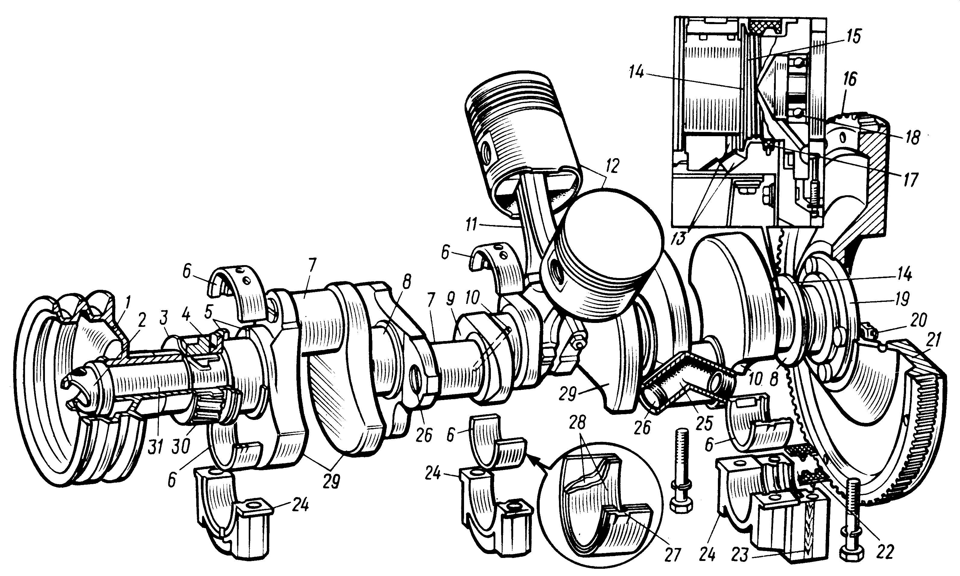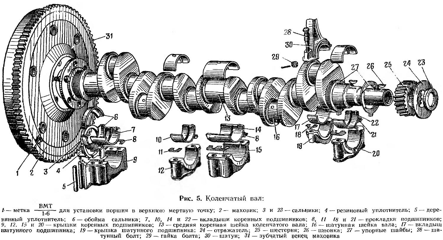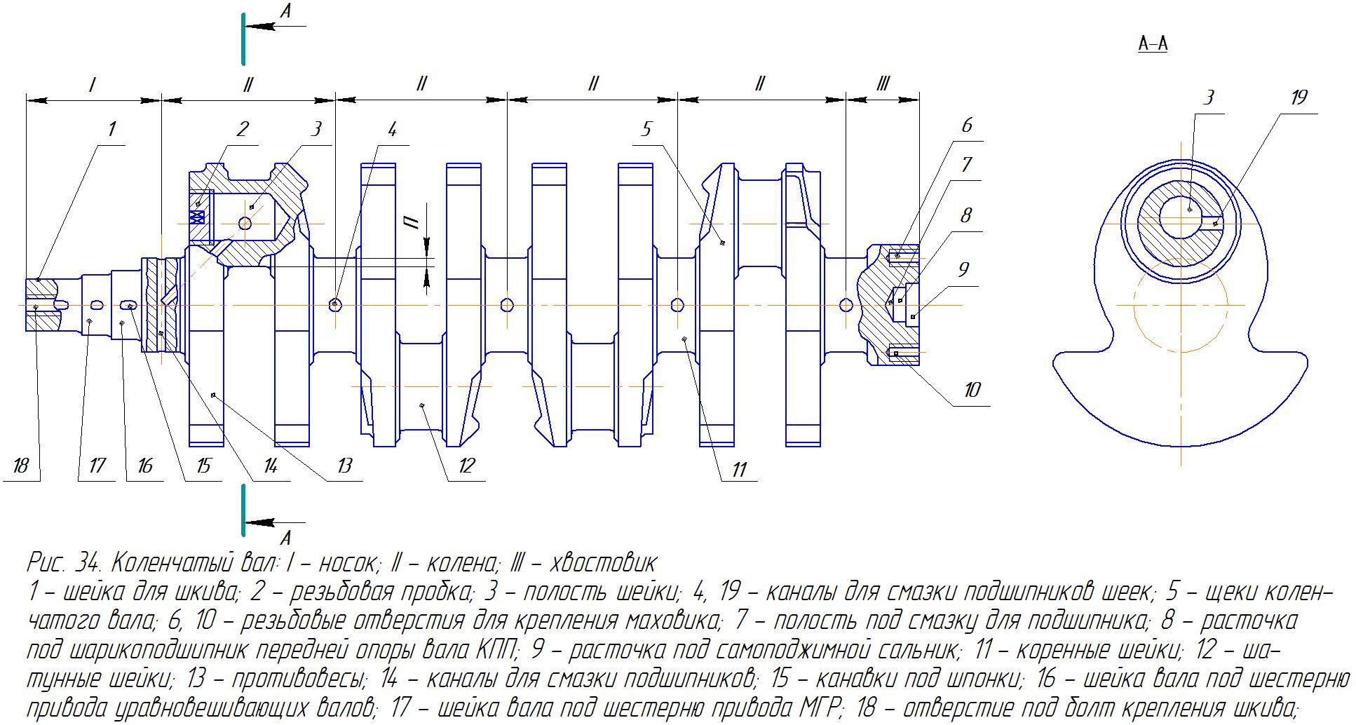 Коленчатый вал двигателя ЗИЛ 130 схема