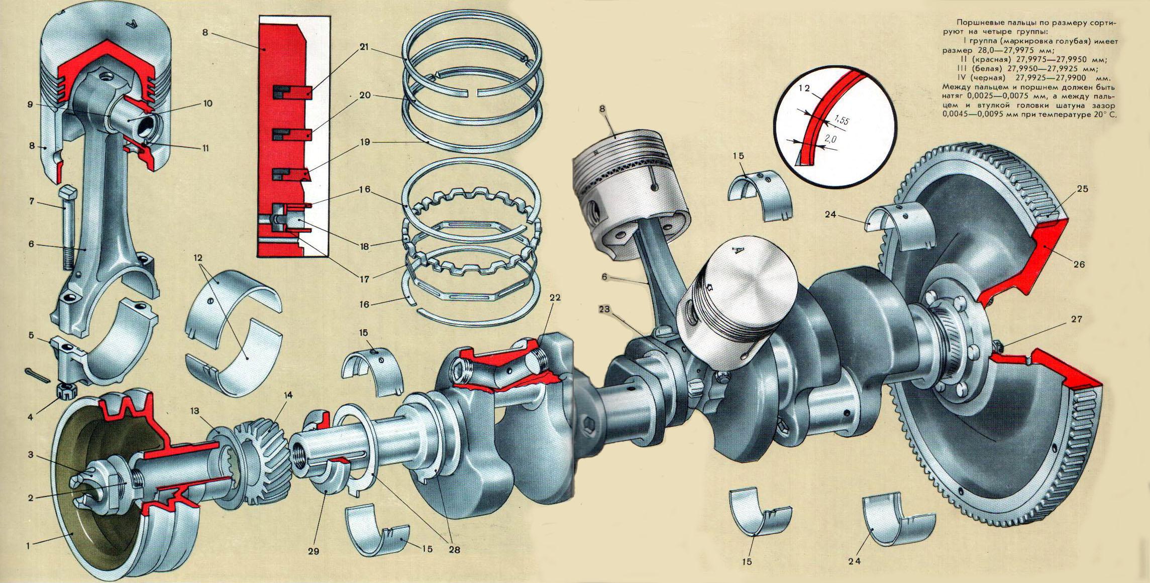 ЯМЗ 238 детали Кривошипно шатунного механизма двигателя