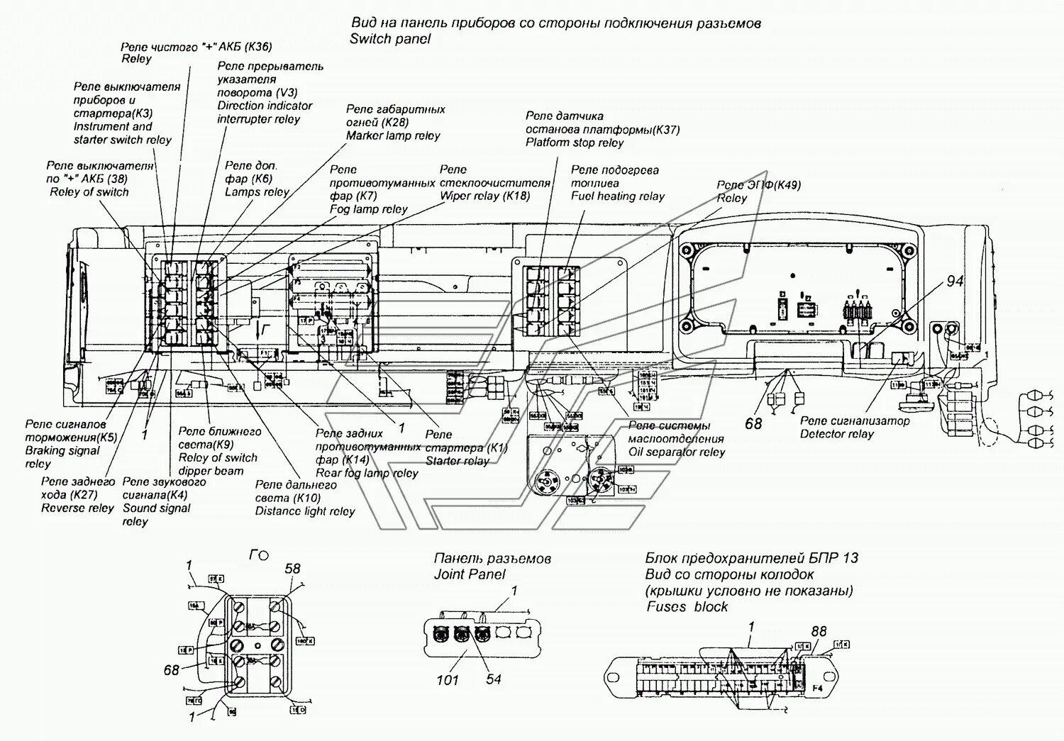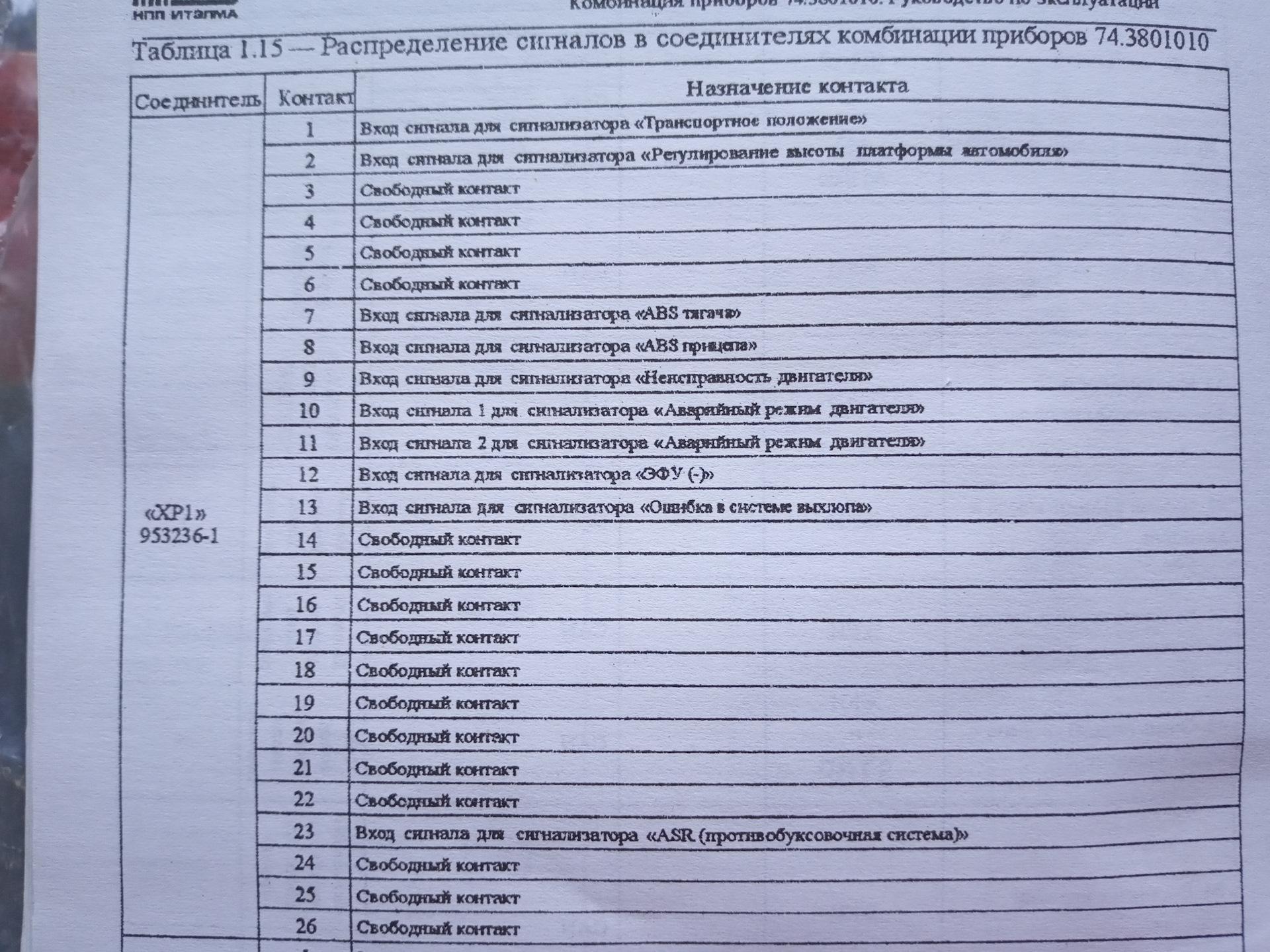 Распиновка щитка приборов КАМАЗ евро 3