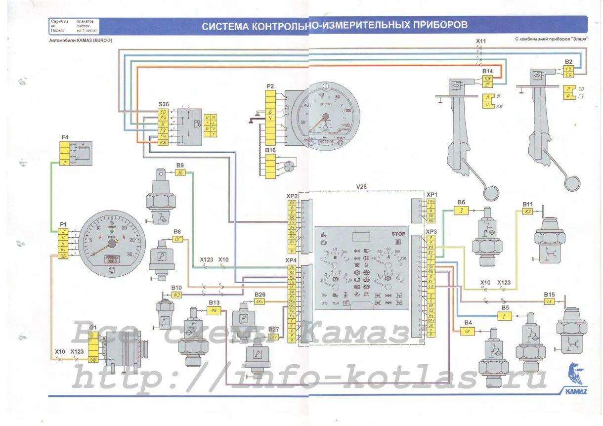 Схема щитка приборов КАМАЗ 65115 евро