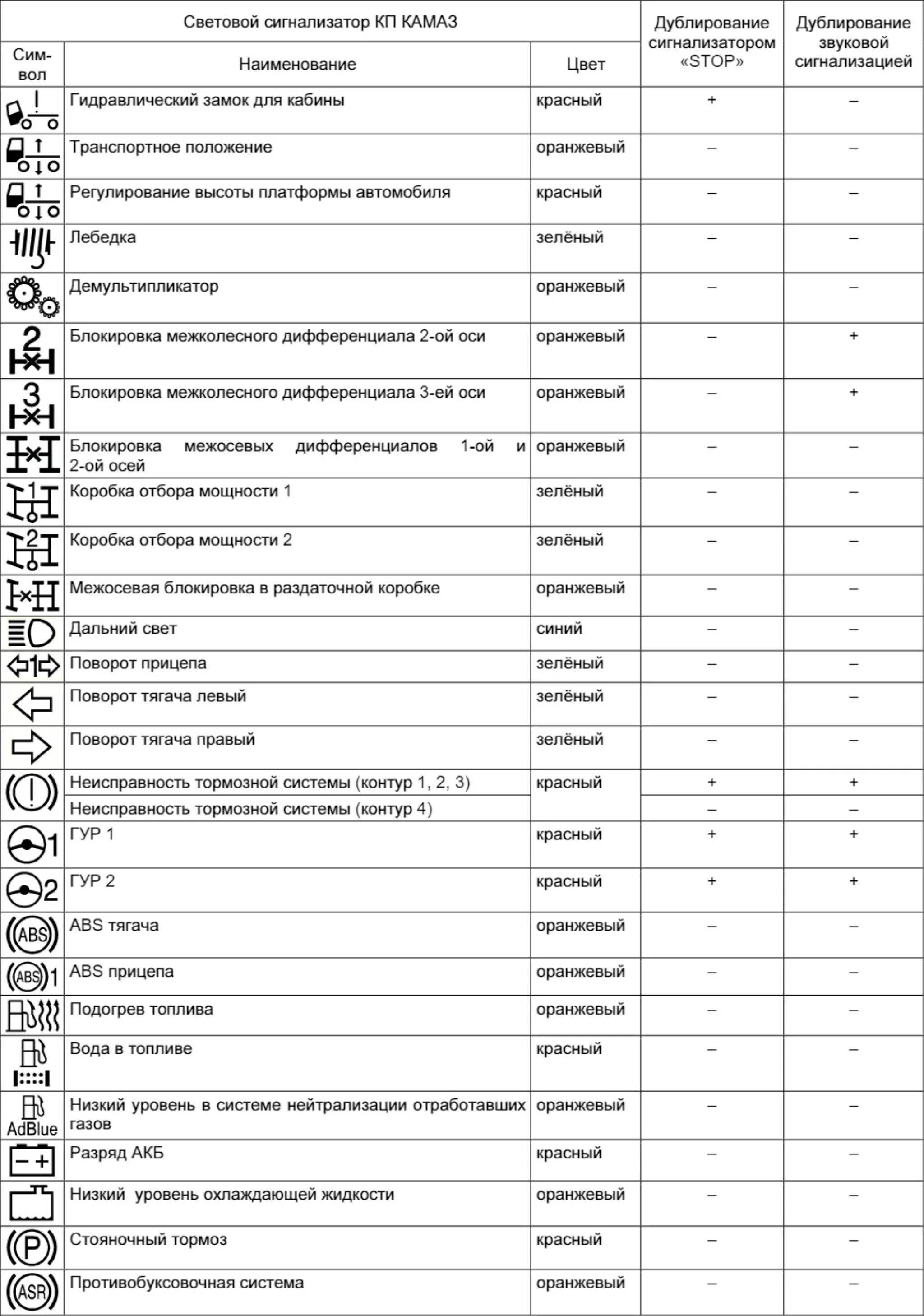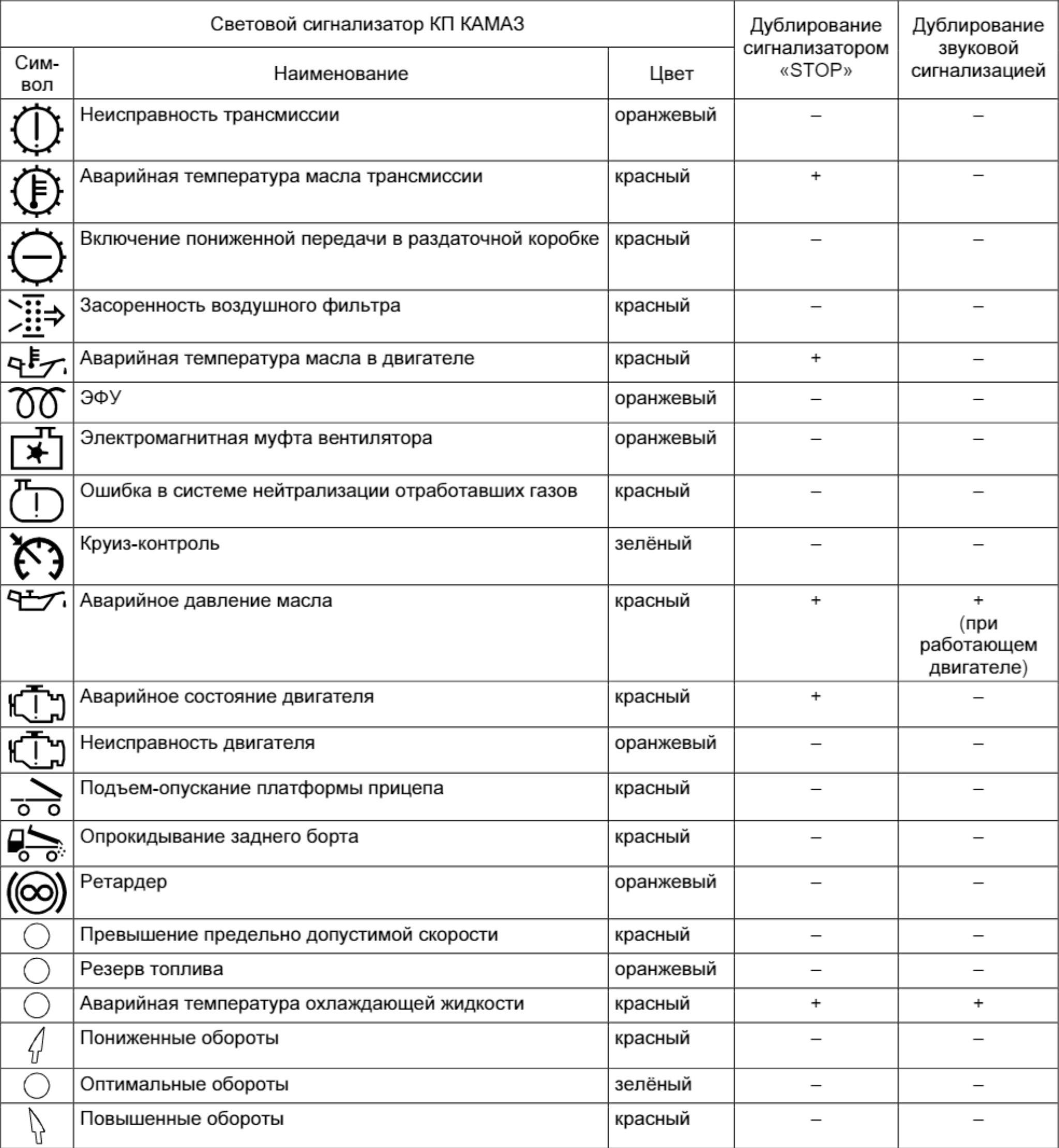Контрольные лампы панели приборов КАМАЗ 6520