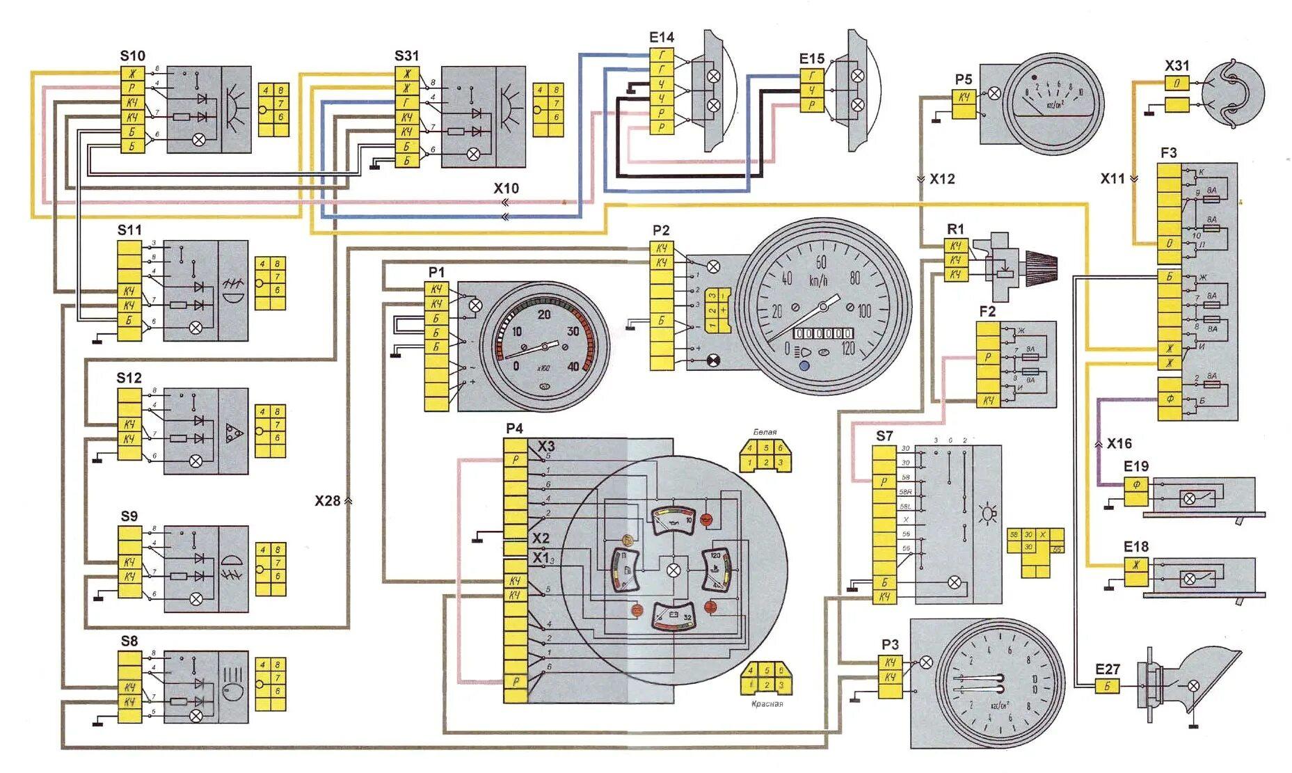 Распиновка щитка приборов КАМАЗ Элара 56.3801-01