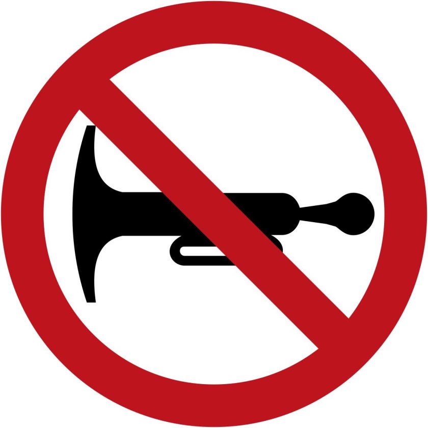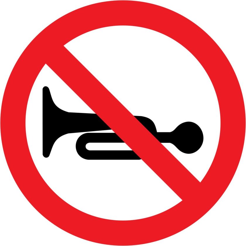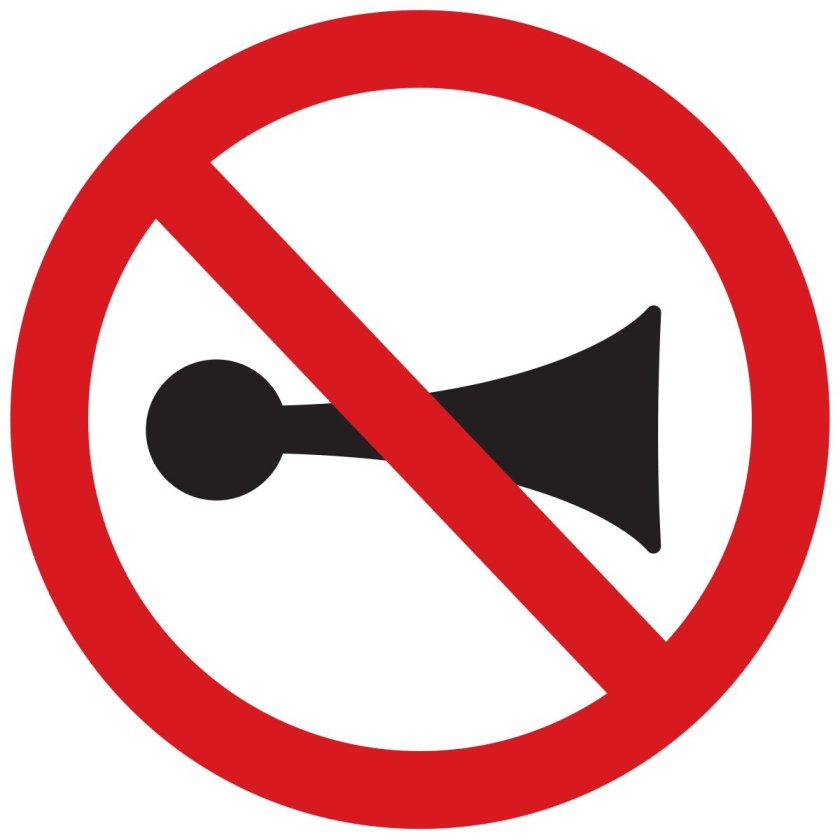 ![Подача звукового сигнала запрещена дорожный знак]()