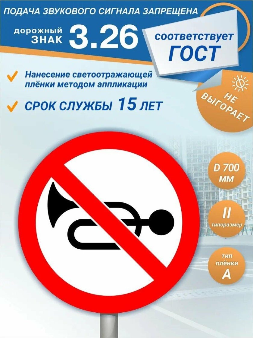 Дорожные знаки 3.26 подача звукового сигнала запрещена
