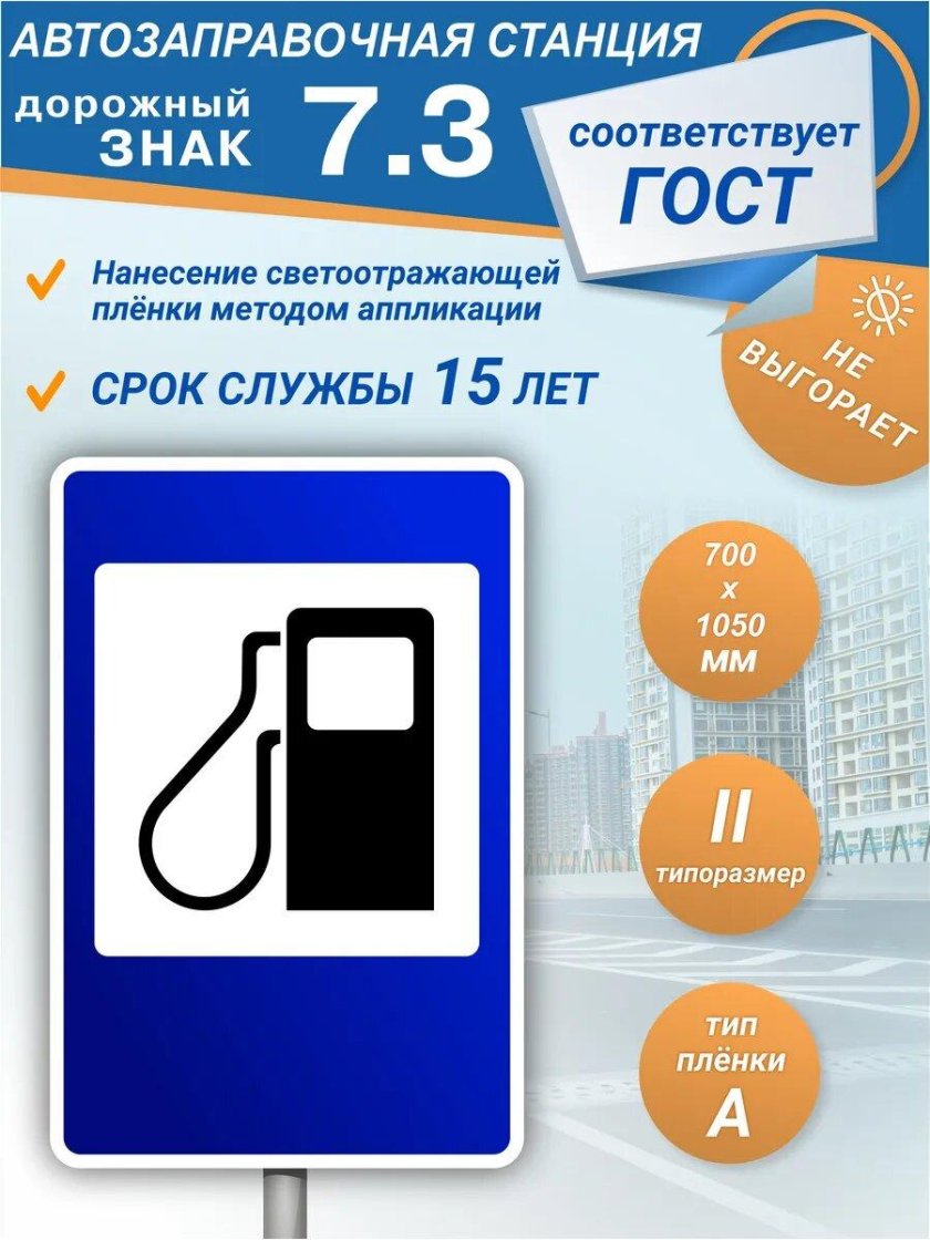 Дорожный знак 7.3 автозаправочная станция