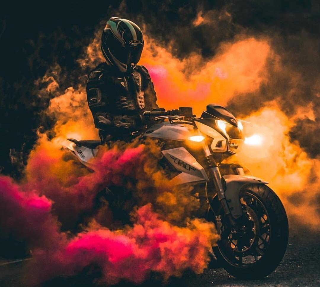 Мотоцикл и цветной дым