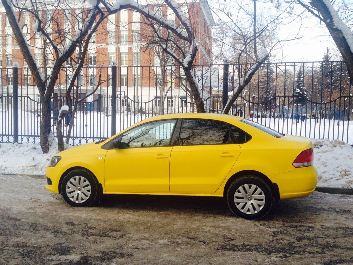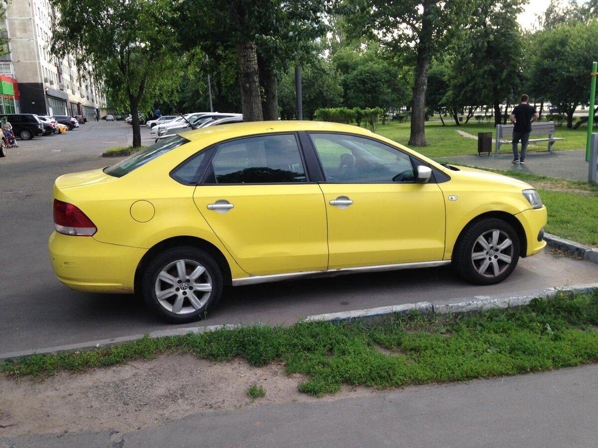 Желтый Фольксваген поло седан