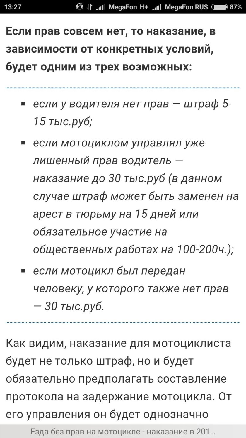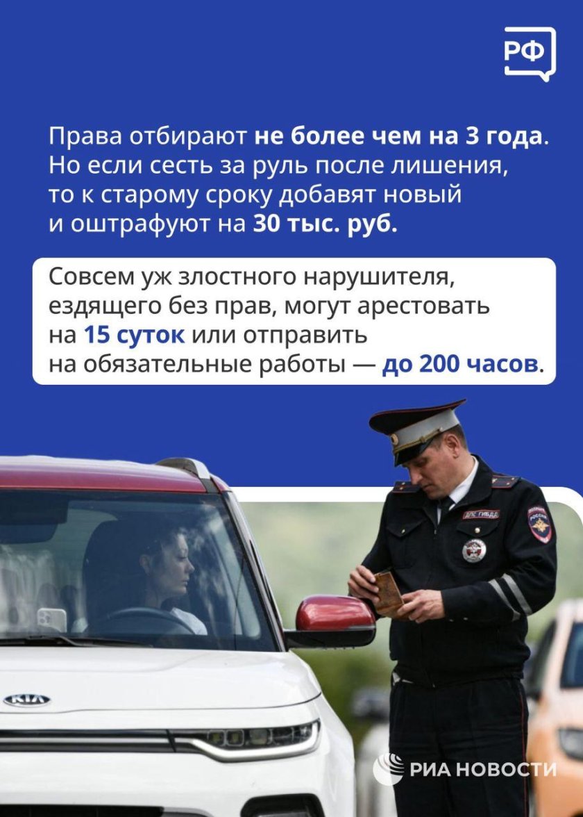 Езда без прав наказание