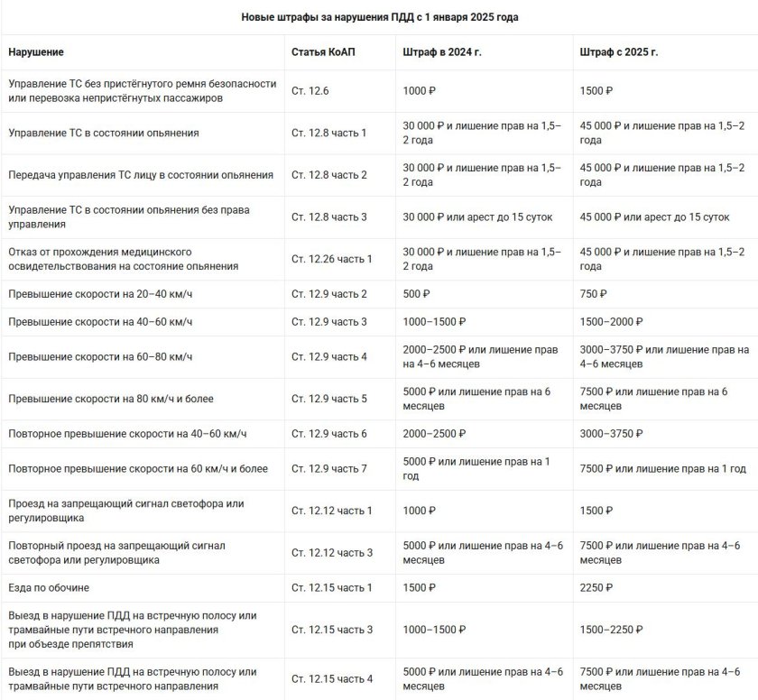 Новые штрафы ГИБДД С 2021 года таблица