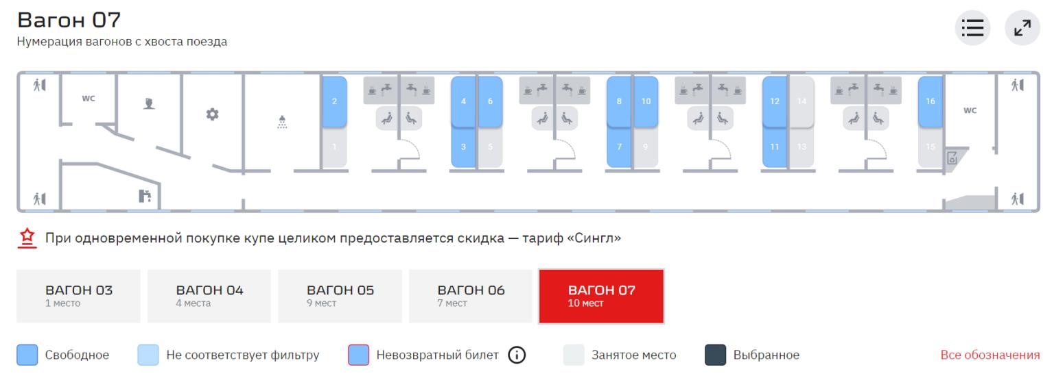 Схема вагона купе РЖД