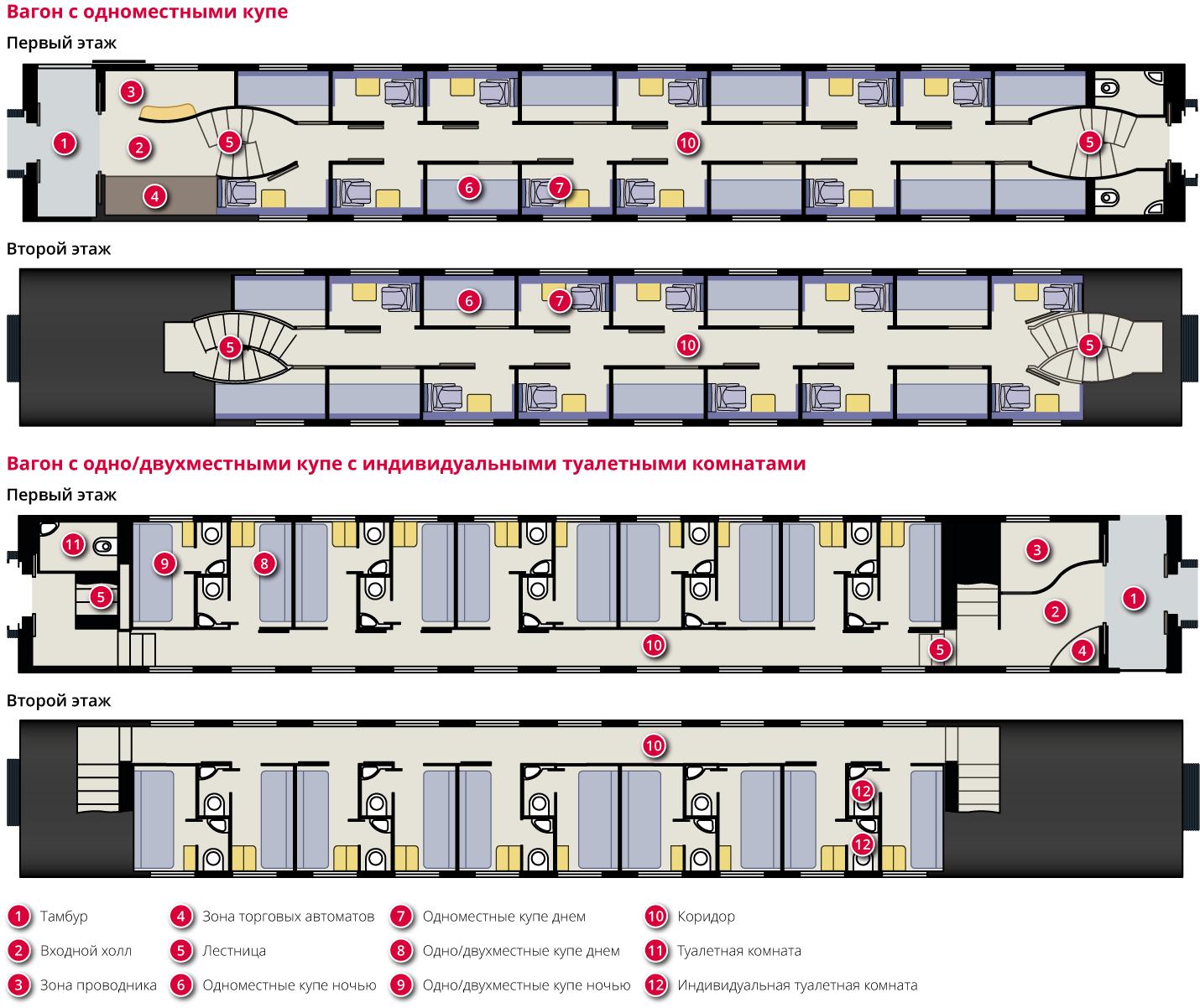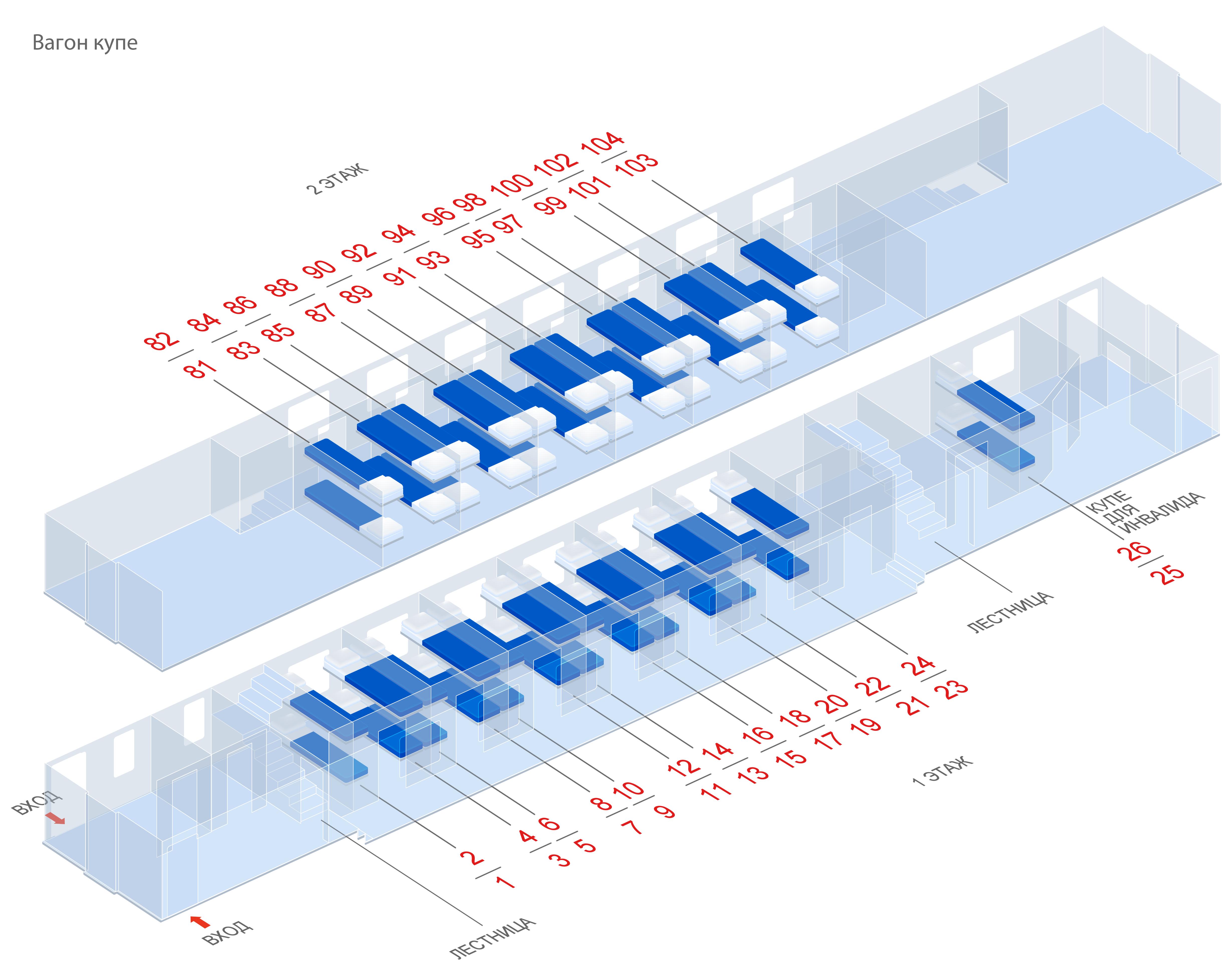 Двухэтажный поезд схема вагона купе