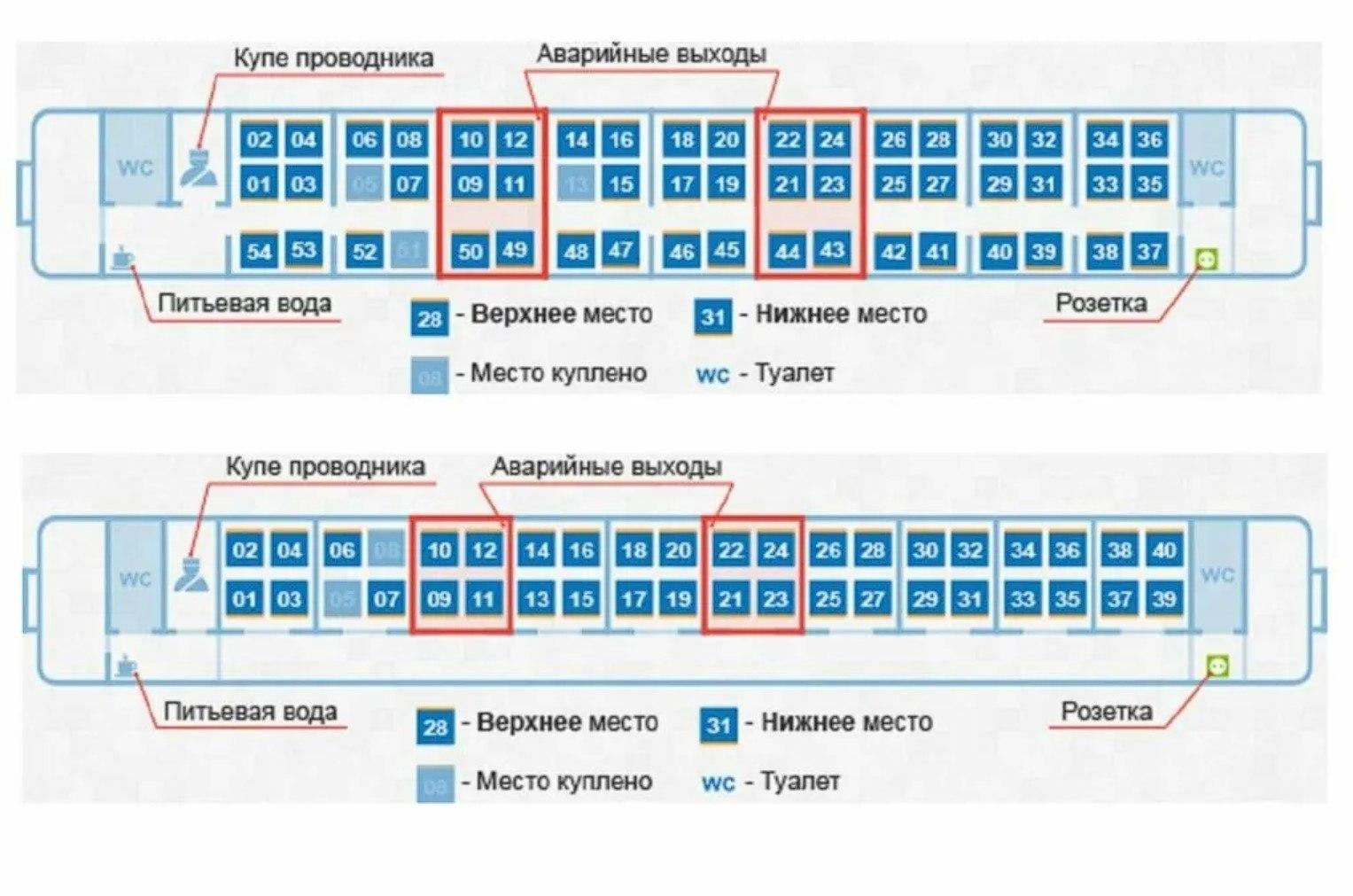 Схема купе двухэтажного вагона