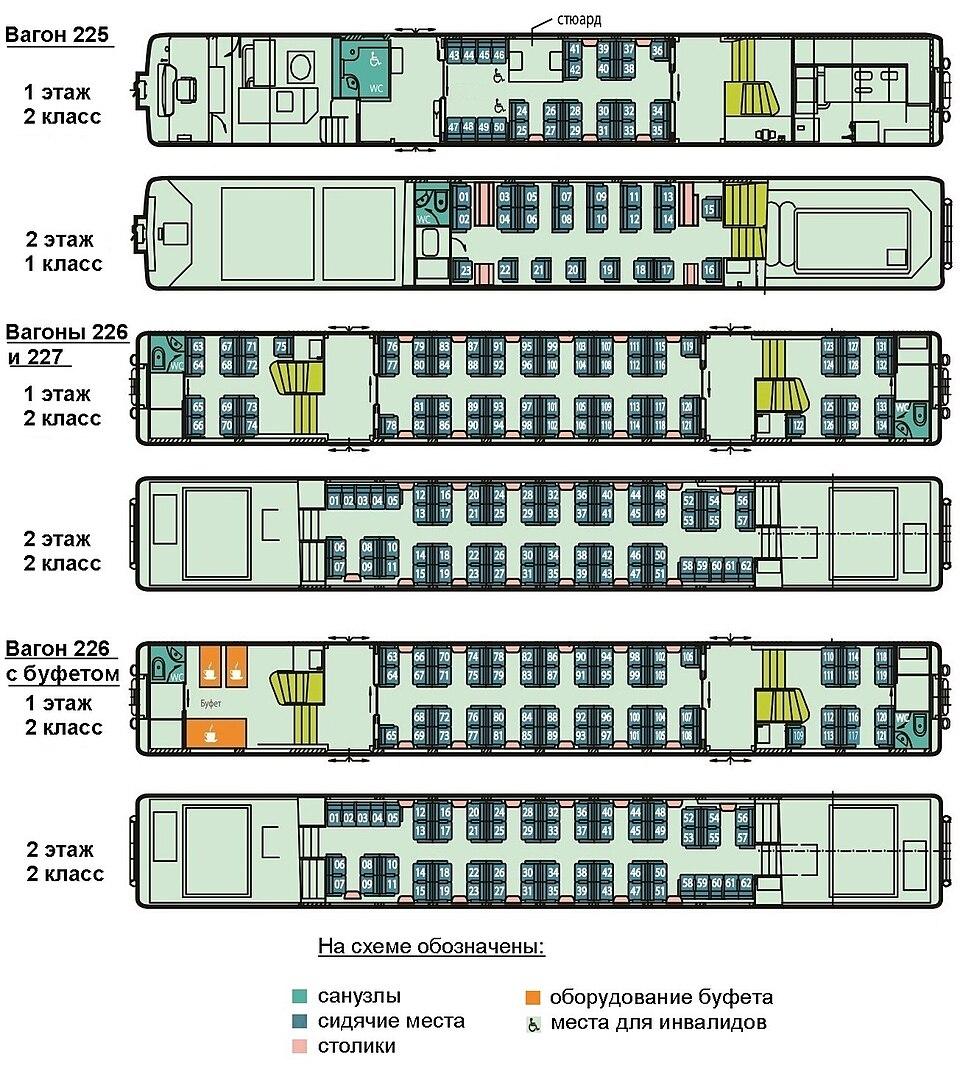 Двухэтажный поезд схема вагона